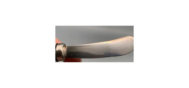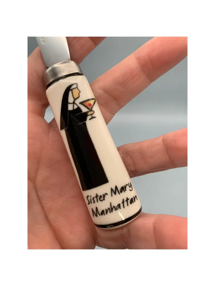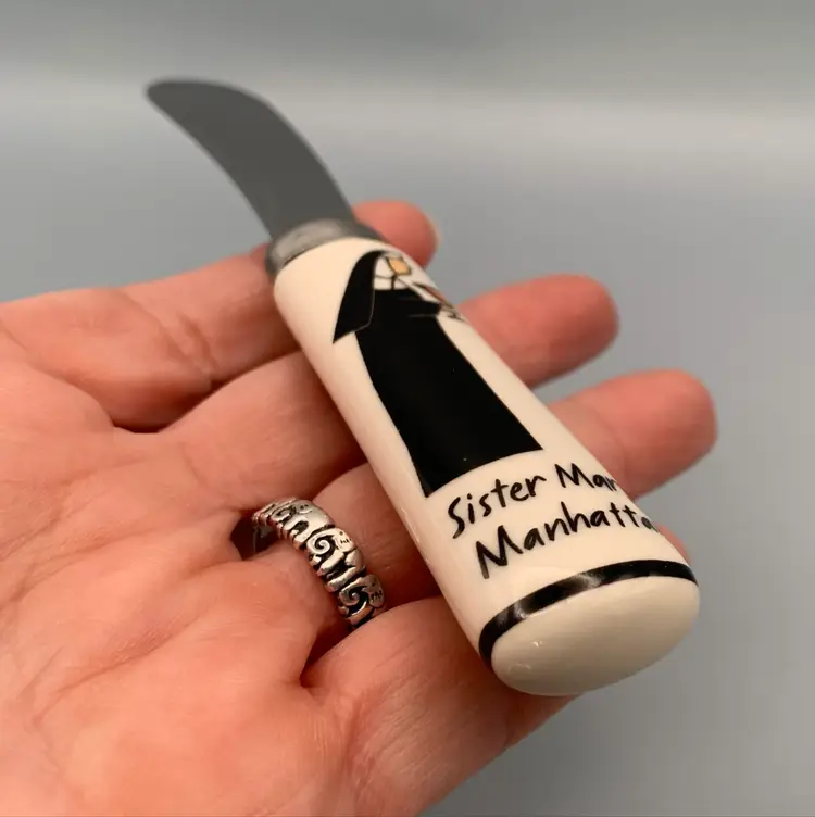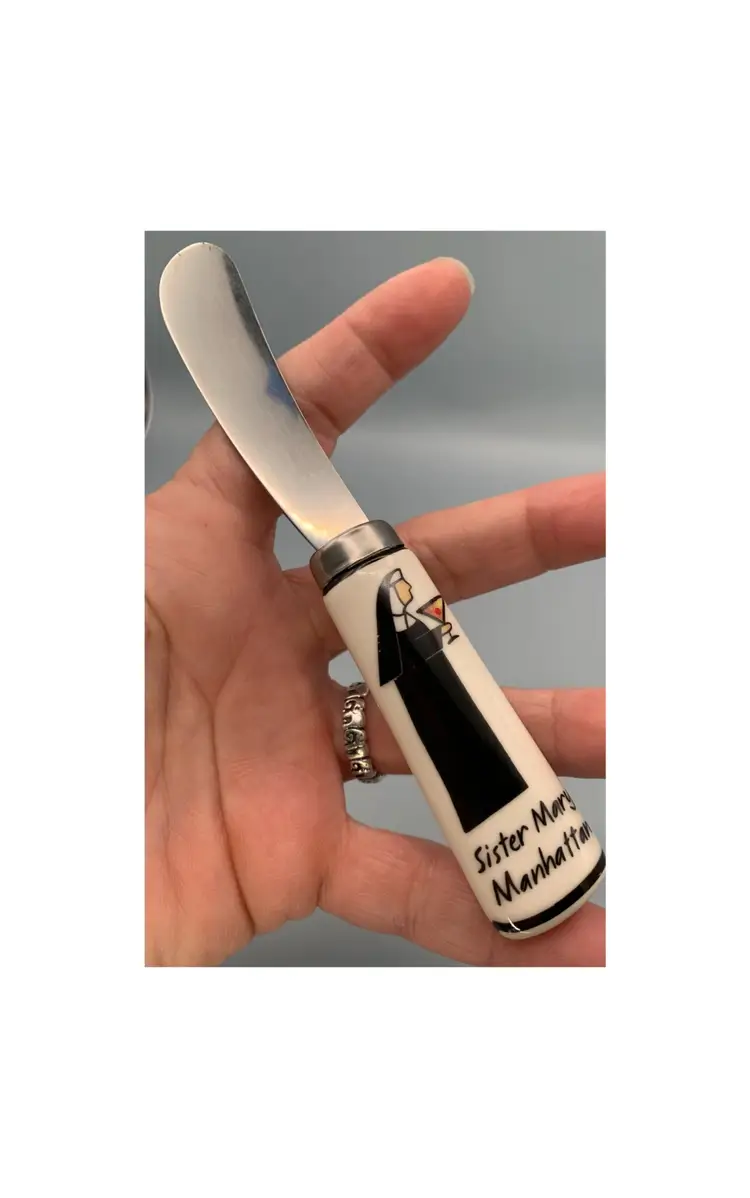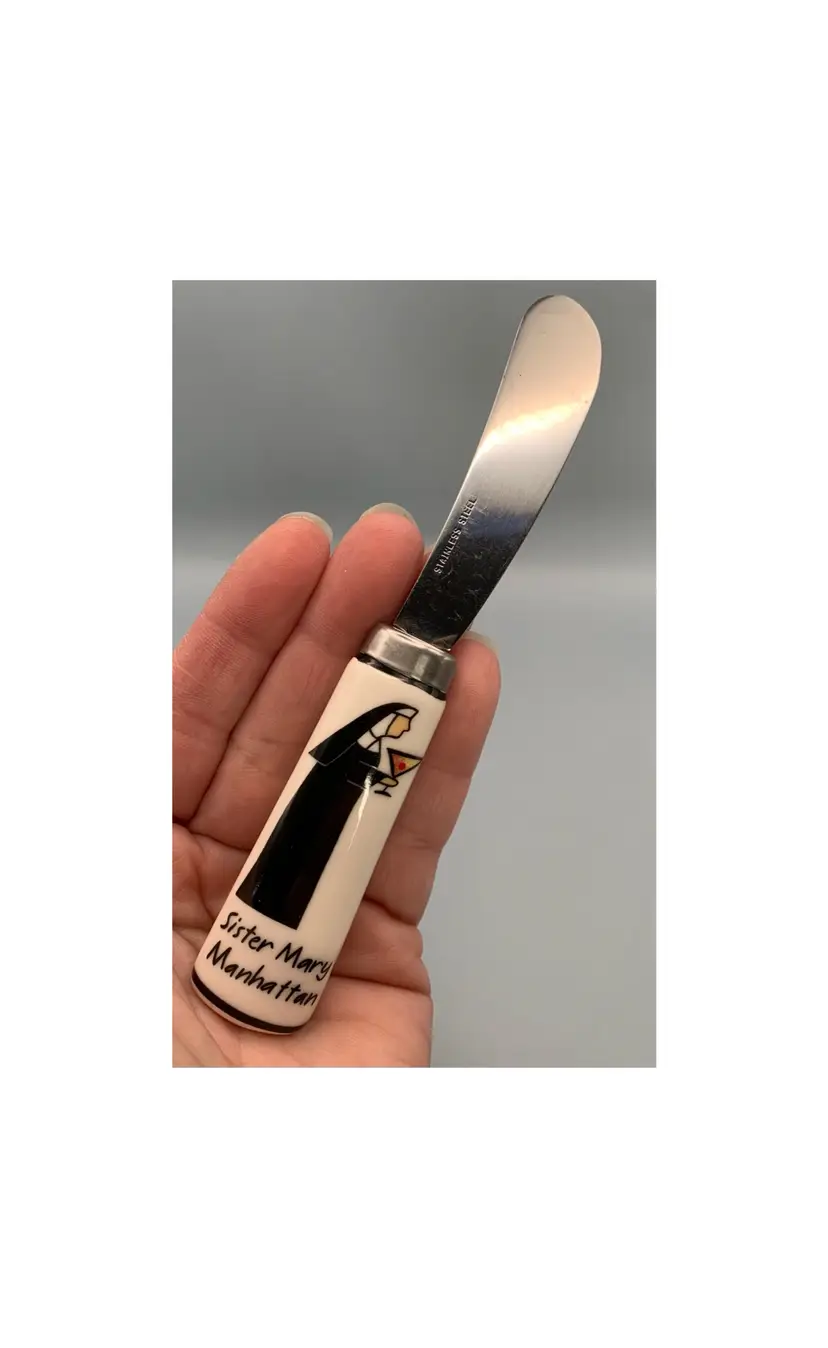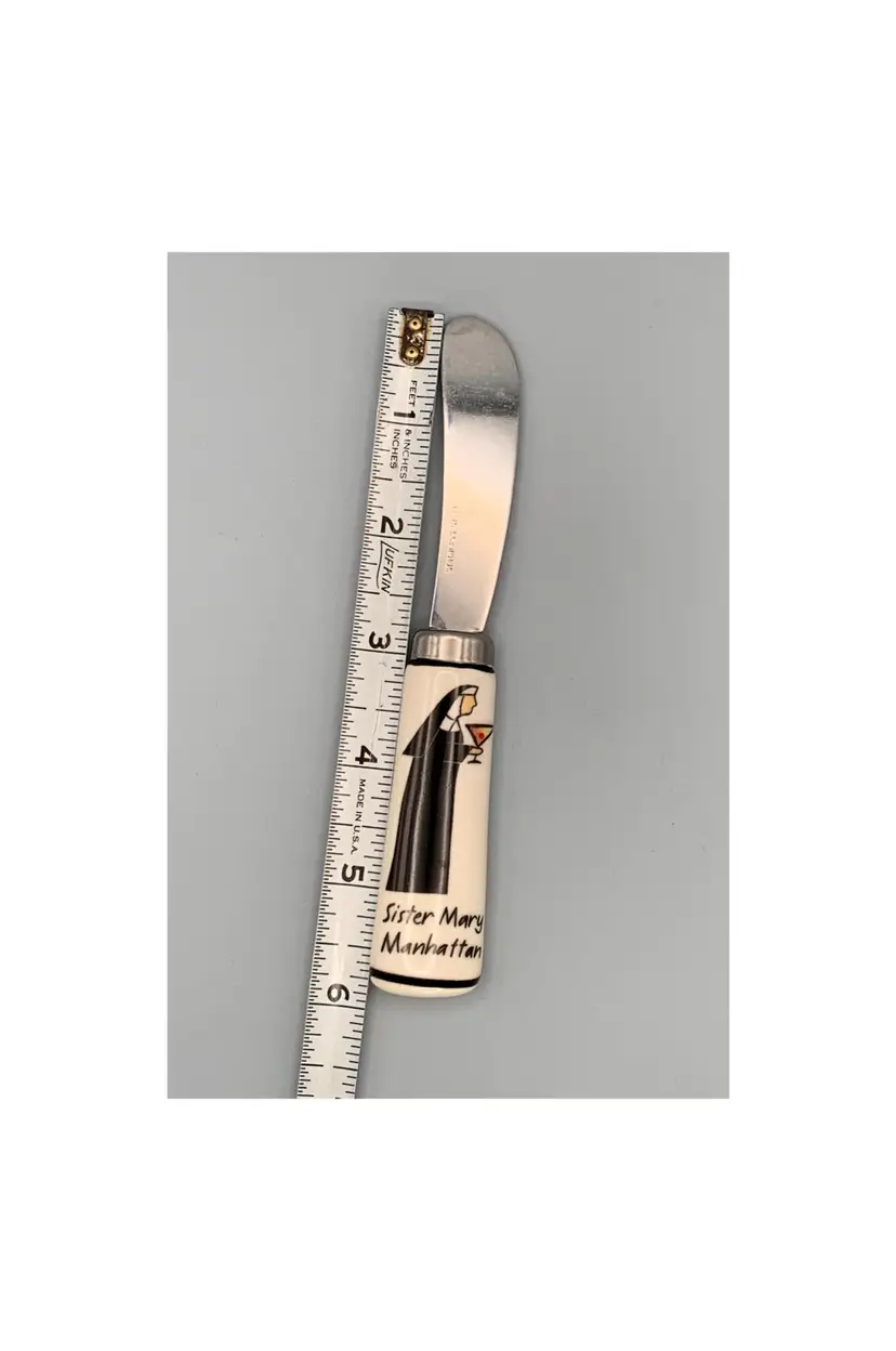 Cute spreader with stainless steel blade. Approximately 5.75” long