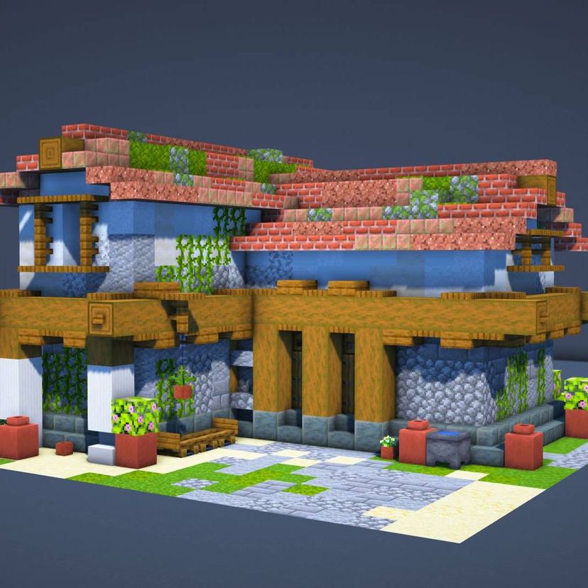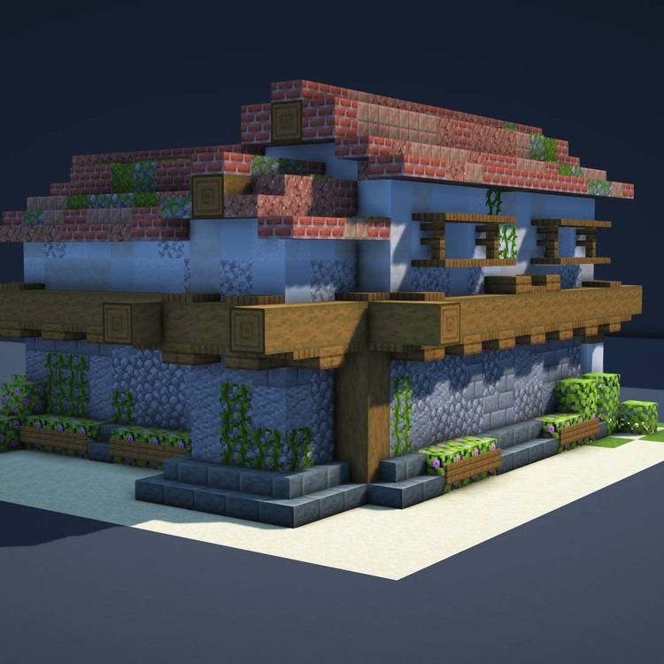 Key feature(s): • Mossy brick roof • Hefty stripped spruce support beams • Mediterranean architecture