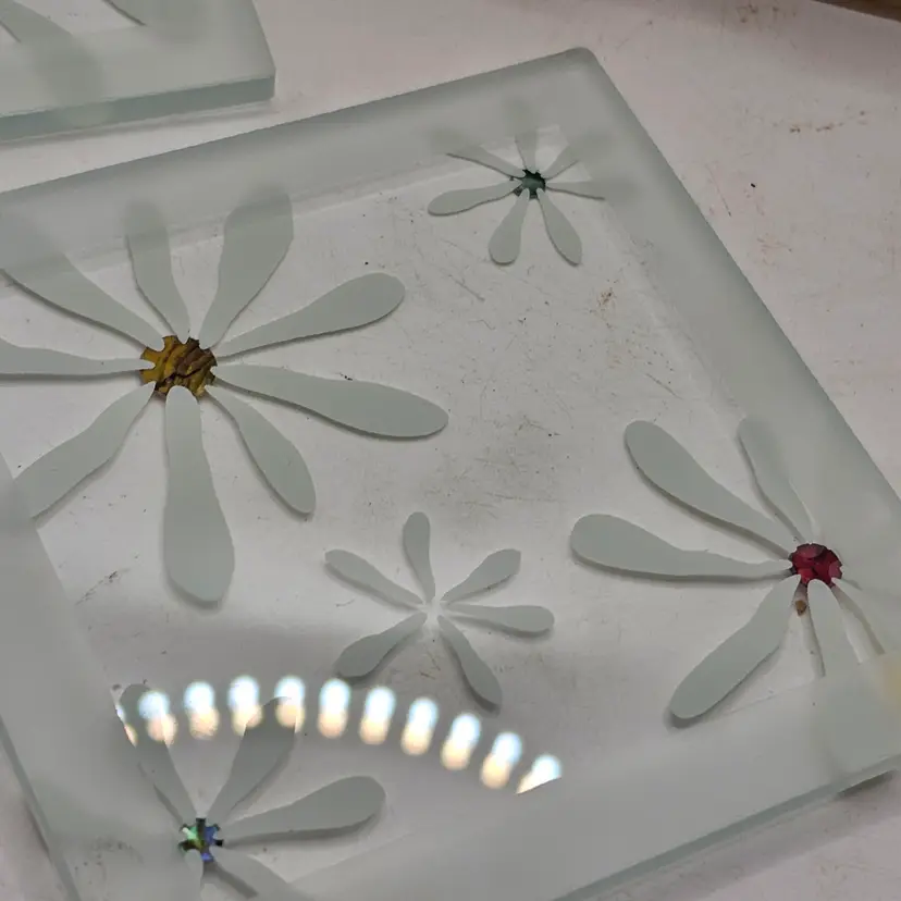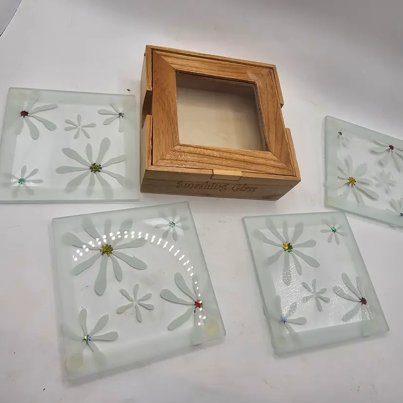 Smashing glass floral design glass coasters in box set of 4
