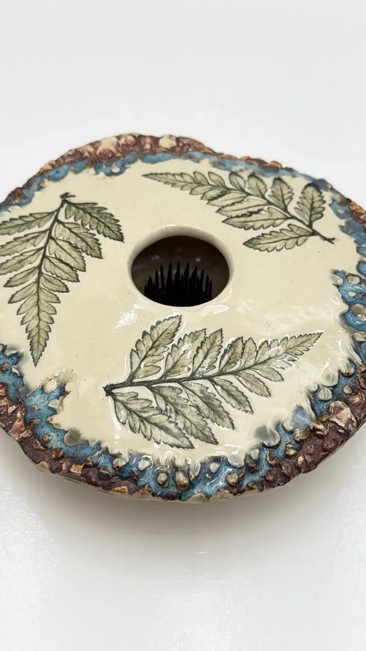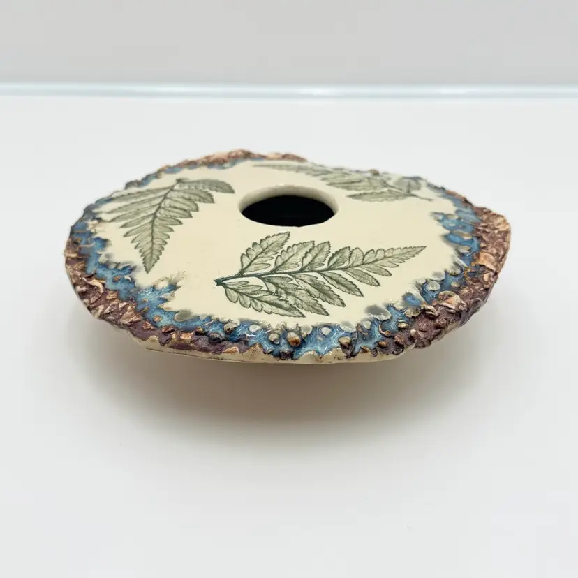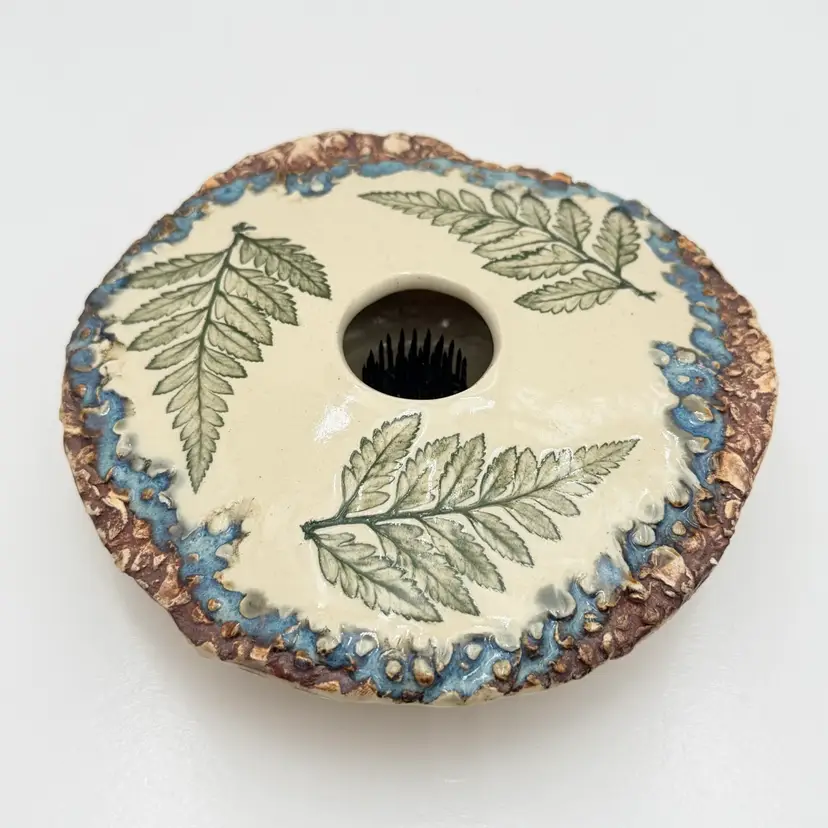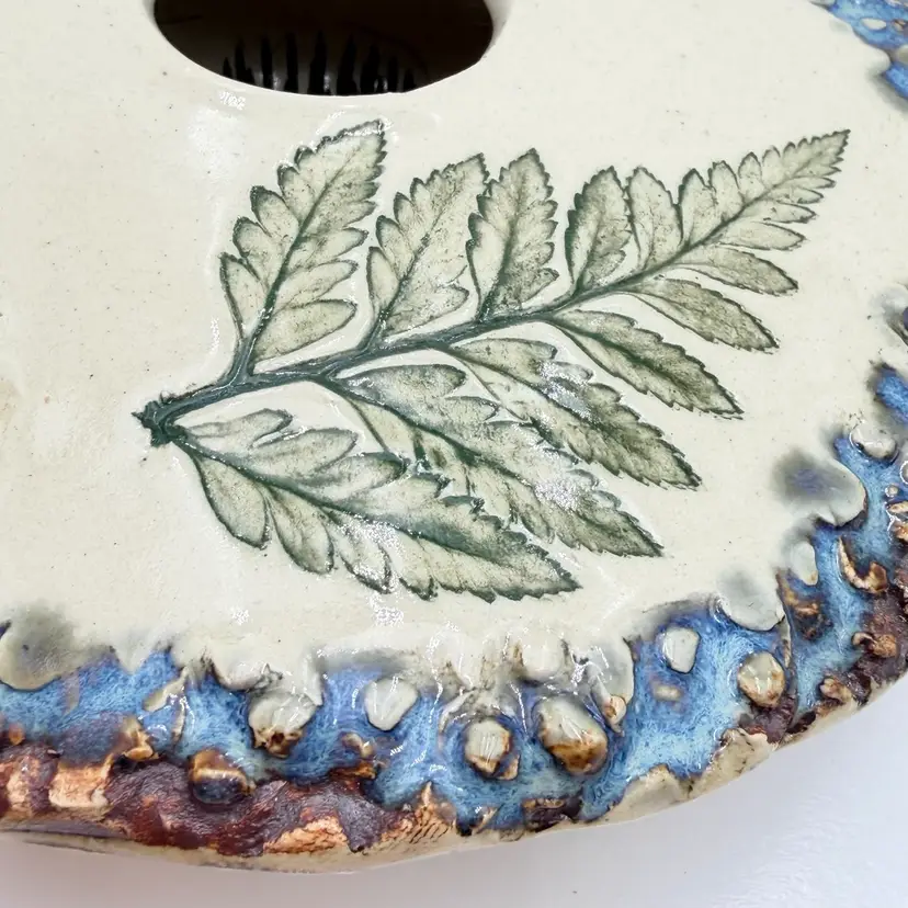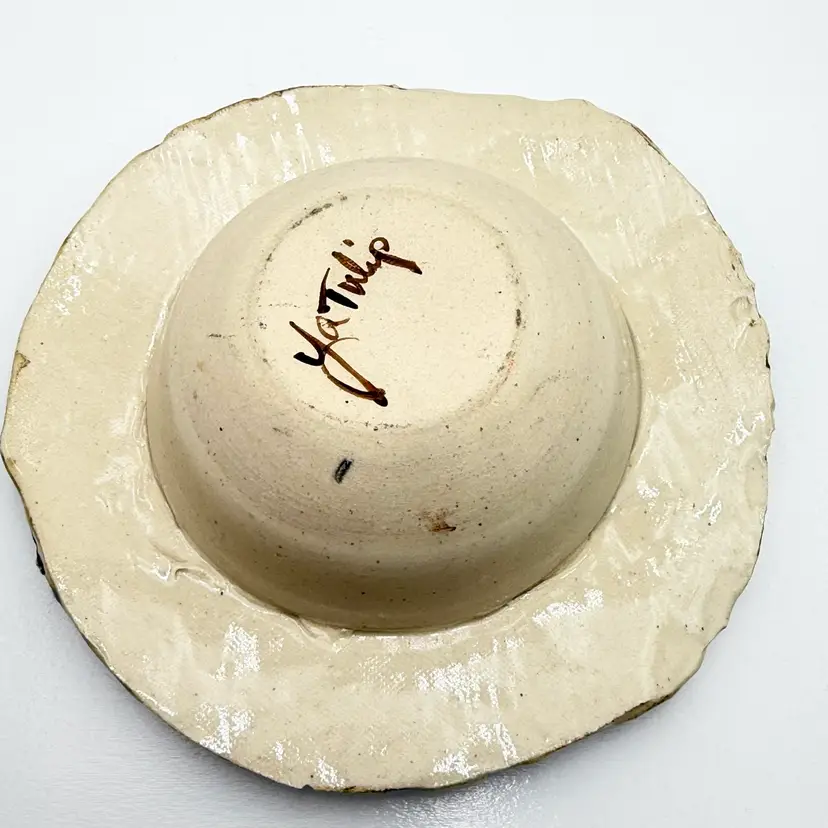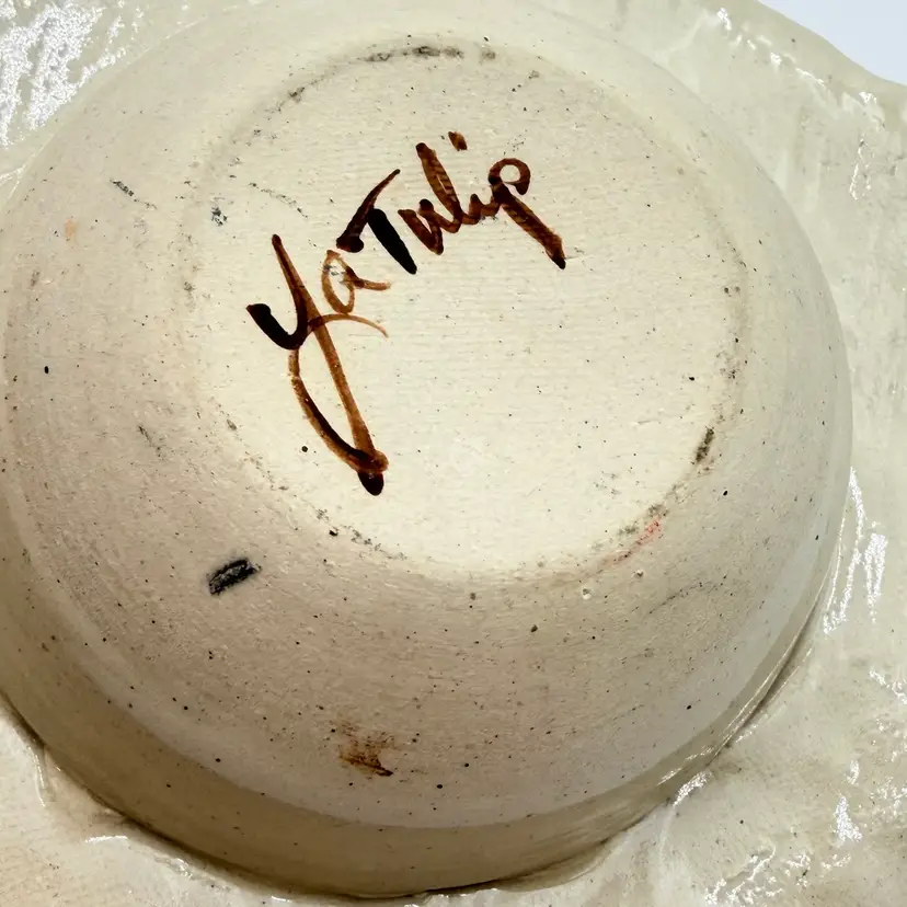 Studio Pottery Signed Ya Tulip Ikabana With Flower Frog