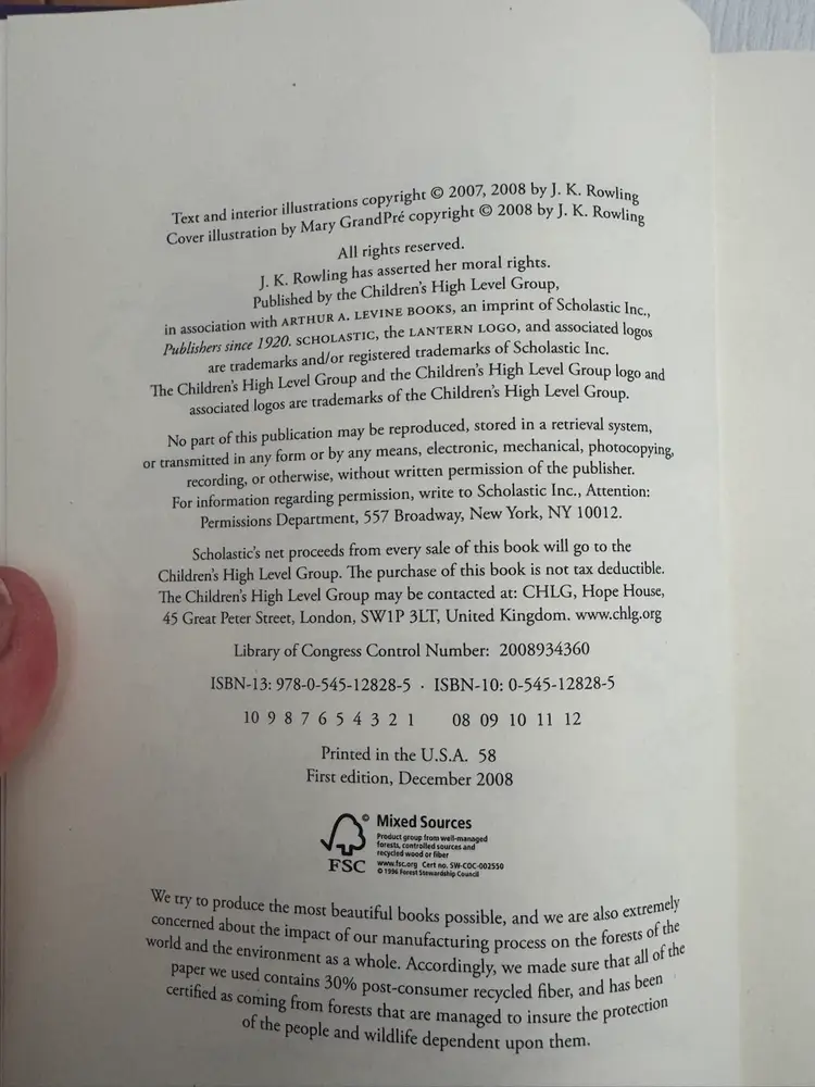 Teen Reader Hard Cover ‘The Tales of Beedle The Bard’ A ‘Wizarding Classic From The World Of Harry Potter’ By J.K. Rowling First Edition 2008