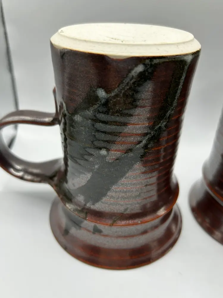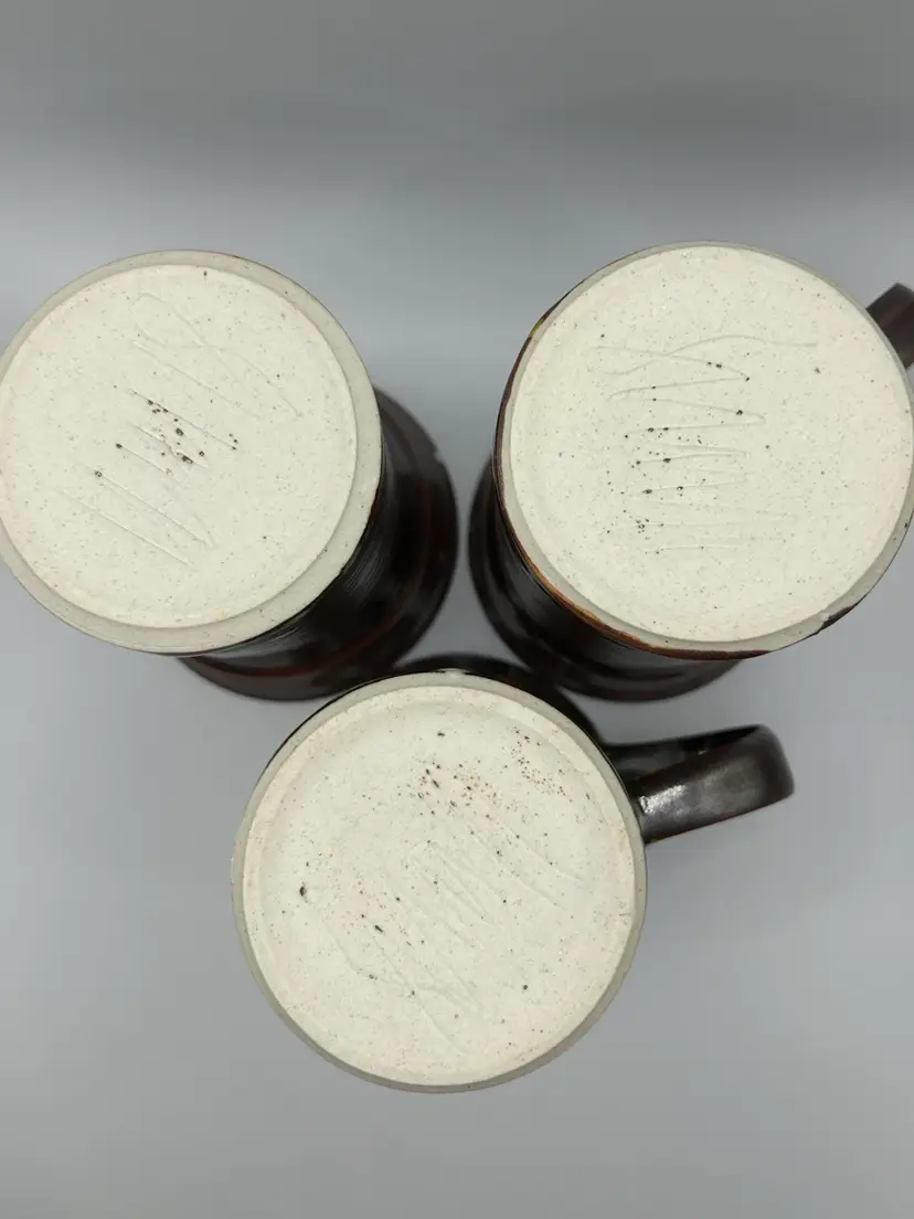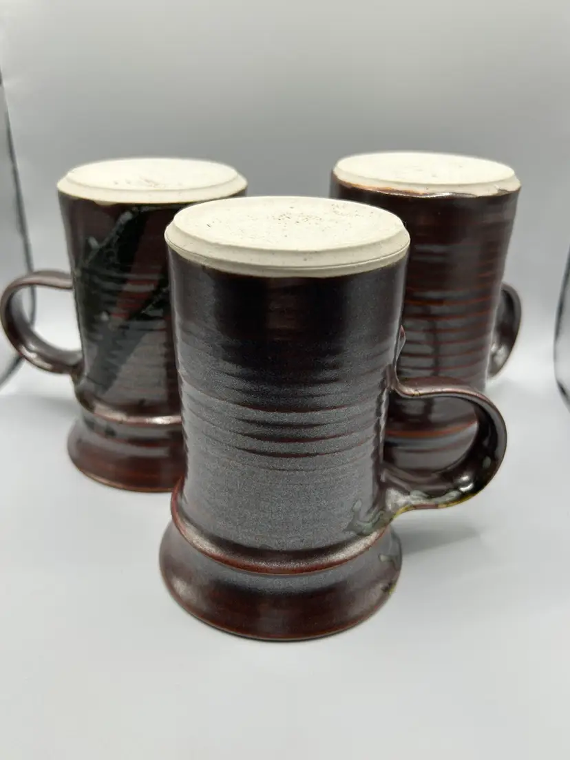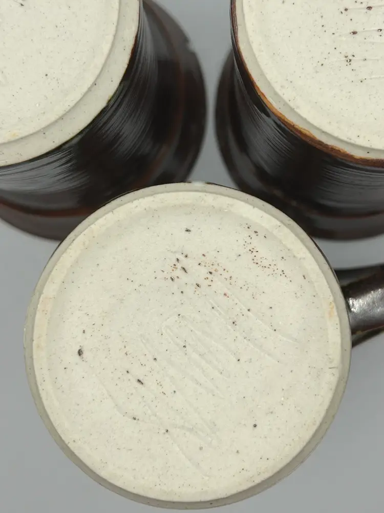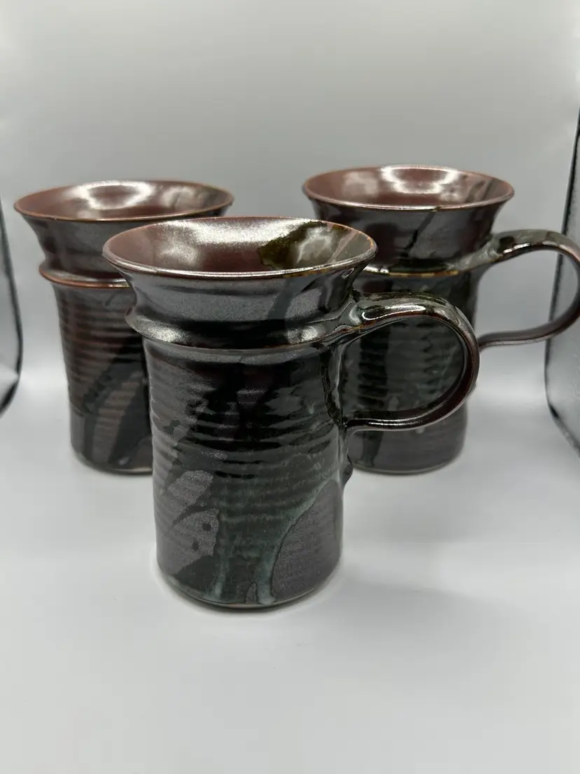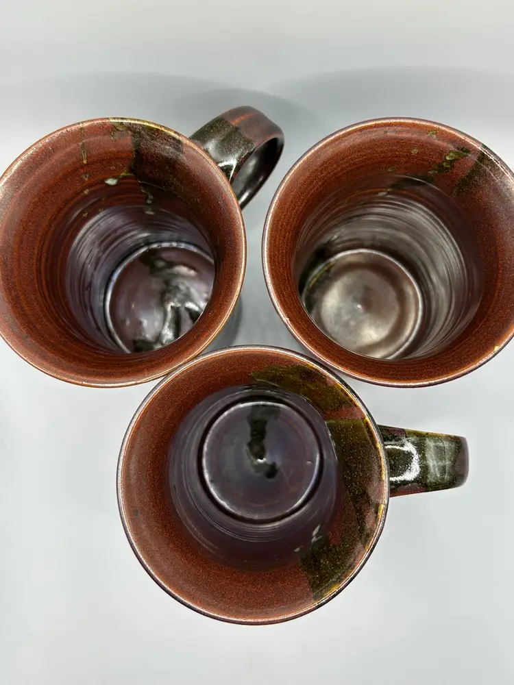 Three Studio Pottery Brown Drip Glaze Coffee/Tea Mugs Signed
