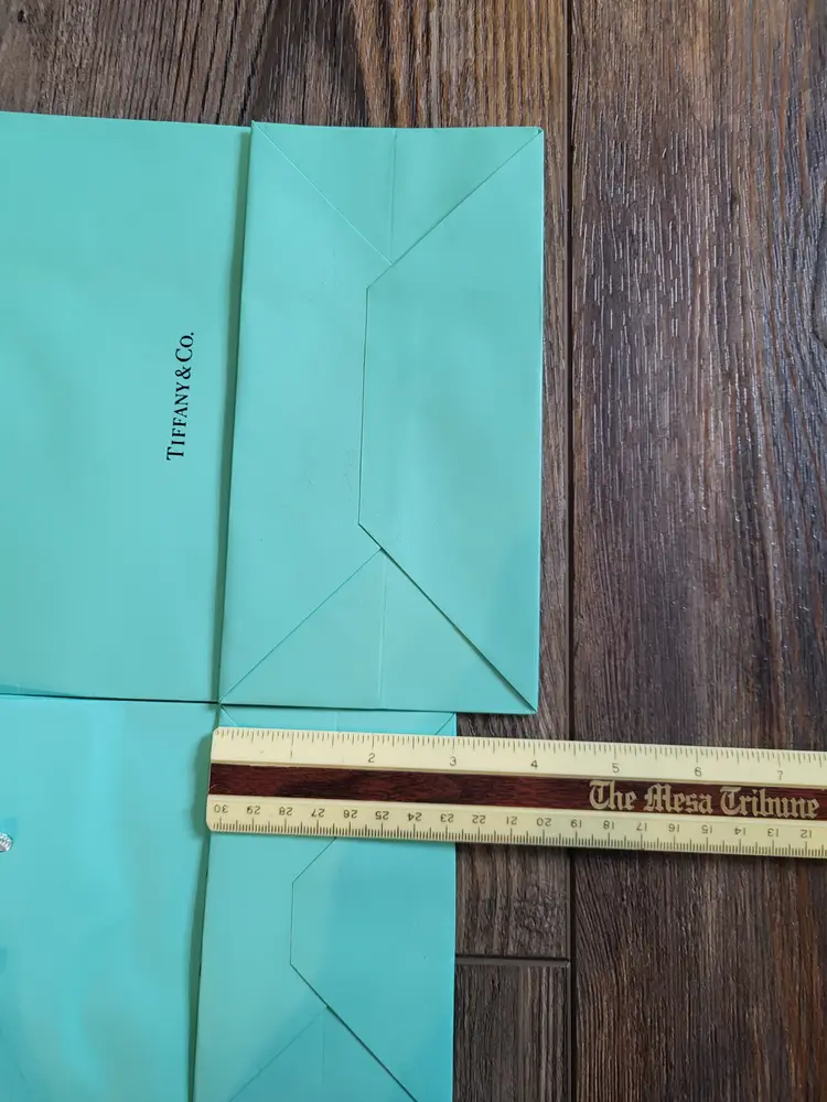 Set of 2 tiffany and company bags. See picturesfor condition and measurements. See my other listings for other shopping bag lots. Shipping cost is based on your location, size and weight of box item is shipped in. If you feel shipping cost is to high let me know what your zip code is and I can see if there is a cheaper option. Shipping is done by USPS, I choose cheapest option when listing but shipping will be USPS. I do combine shipping if you buy more than one item from my store. Any questions please do not hesitate to ask.