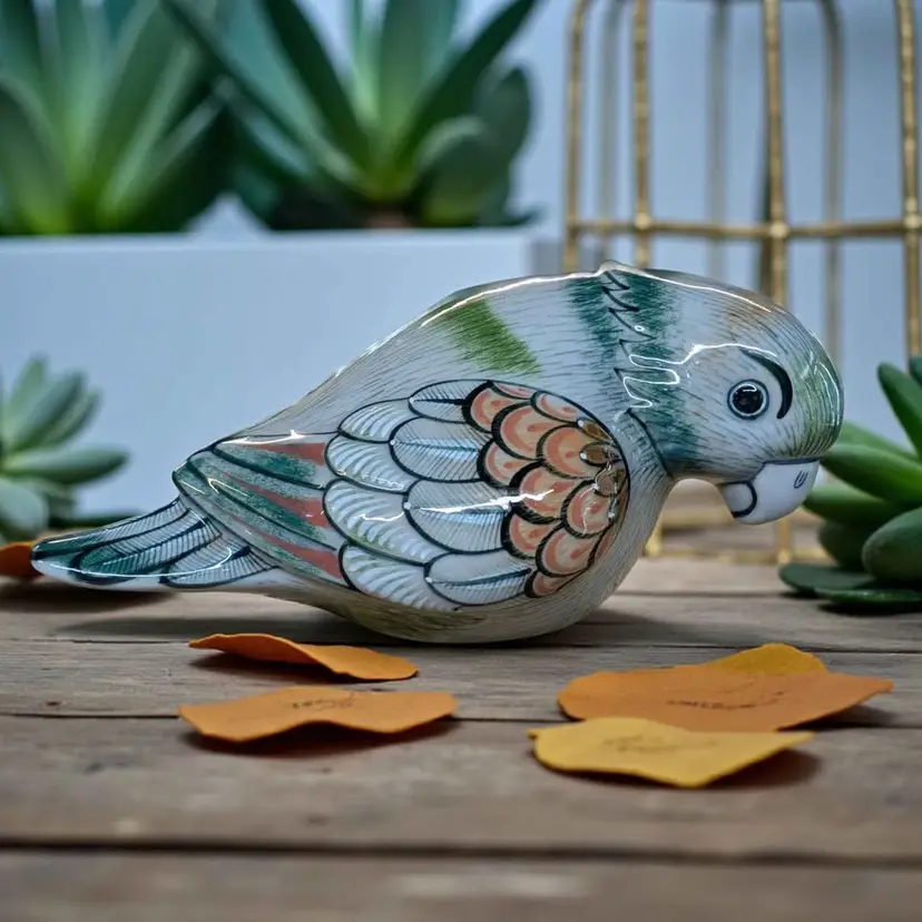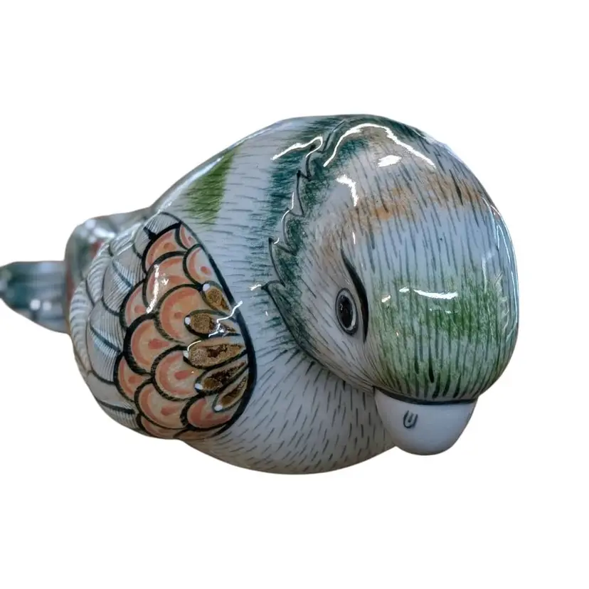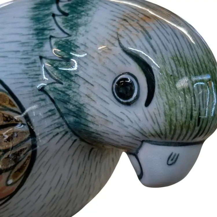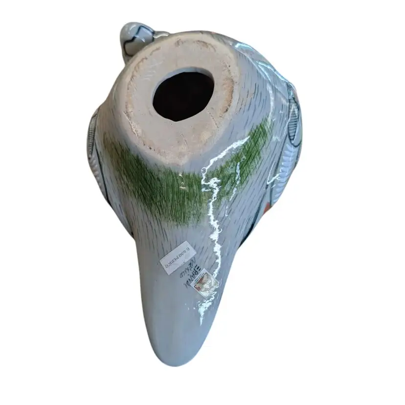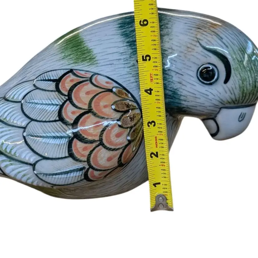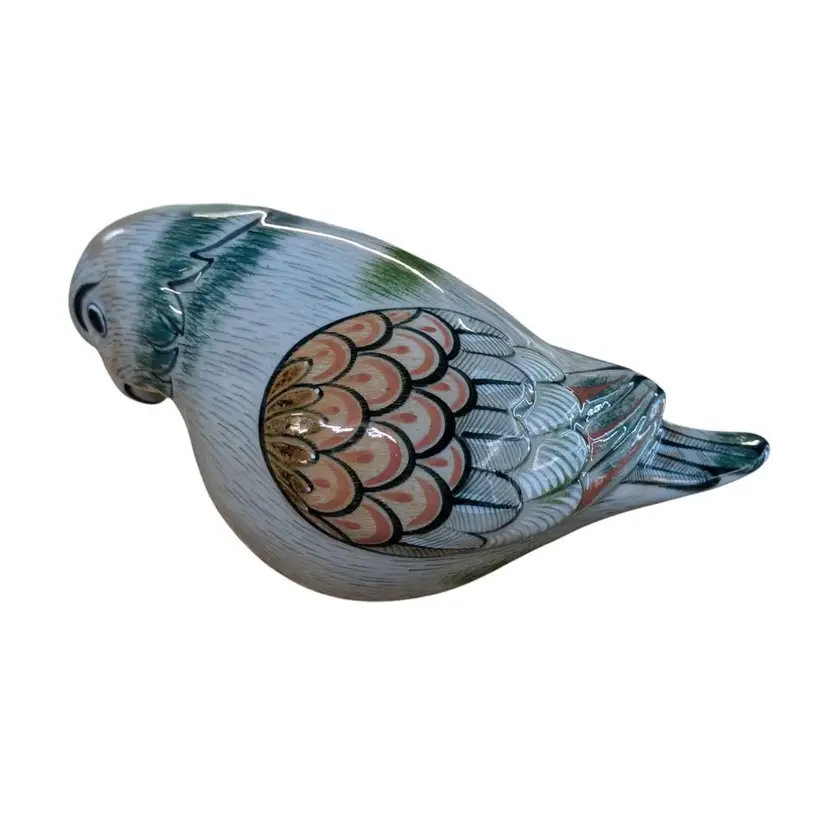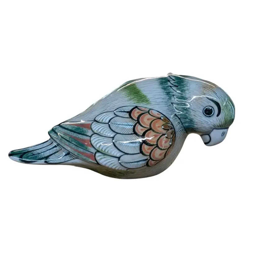 Tonala Mexican Pottery Bird Large Parrot Folk Art Figurine Signed Vintage. This is such a cool piece of Tonala pottery - the colors and details are beautiful! It is signed on the bottom and says made in Mexico "lead free". This is in excellent condition free of any imperfections, no chips or cracks. This parrot is about 13" long and approximately 6.5" tall and weighs just under 4 lbs.