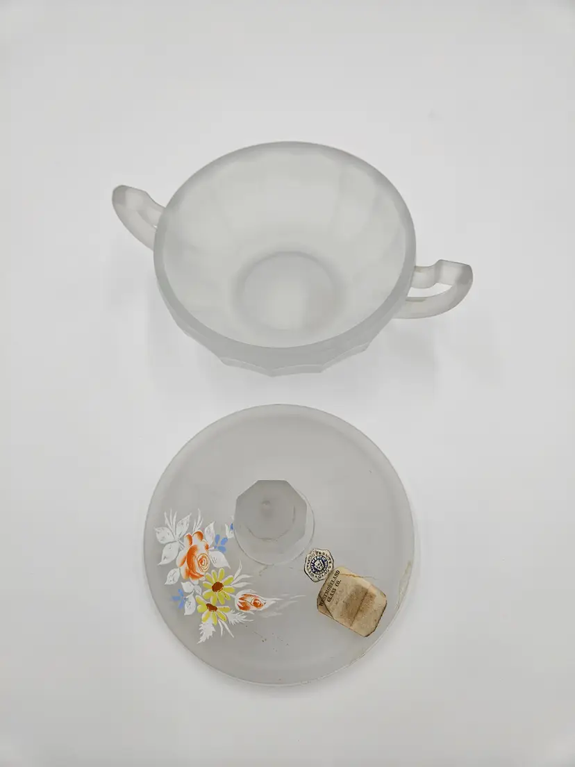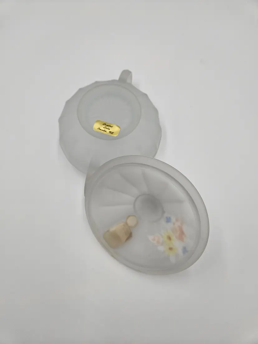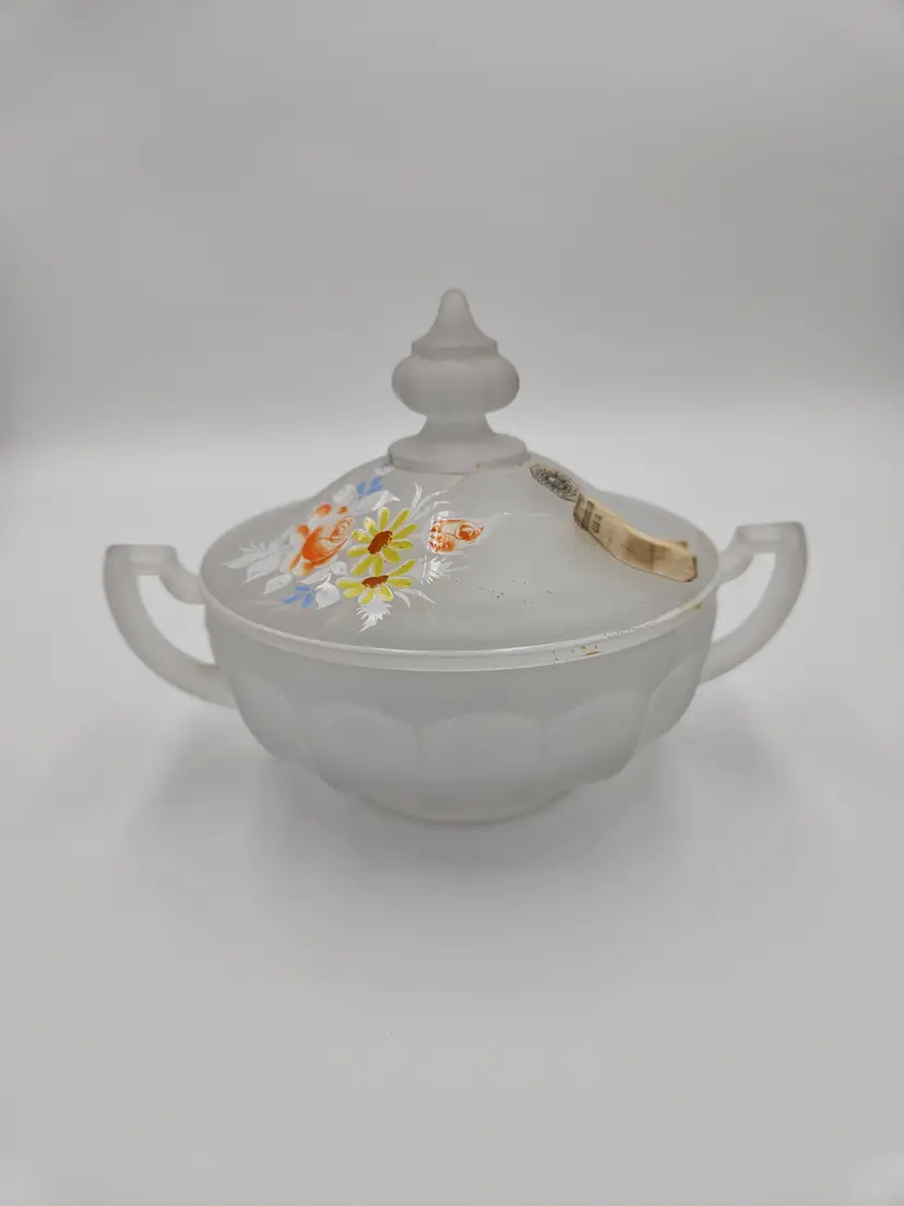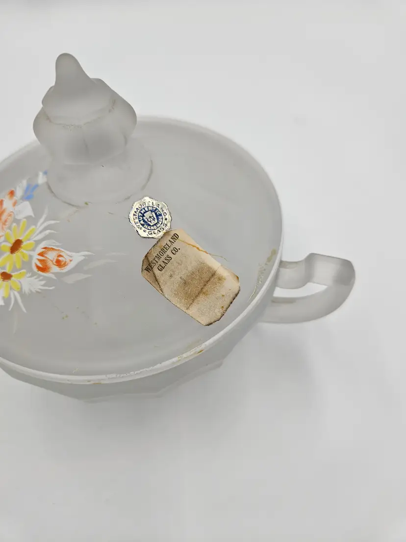 #TR45 Westmoreland Satin Floral Handled Lidded Candy Dish