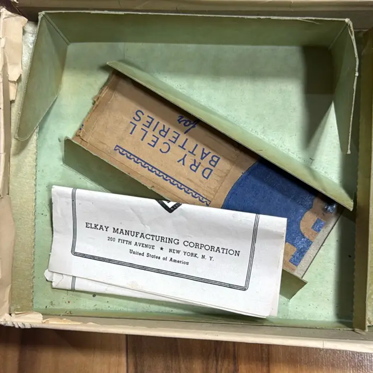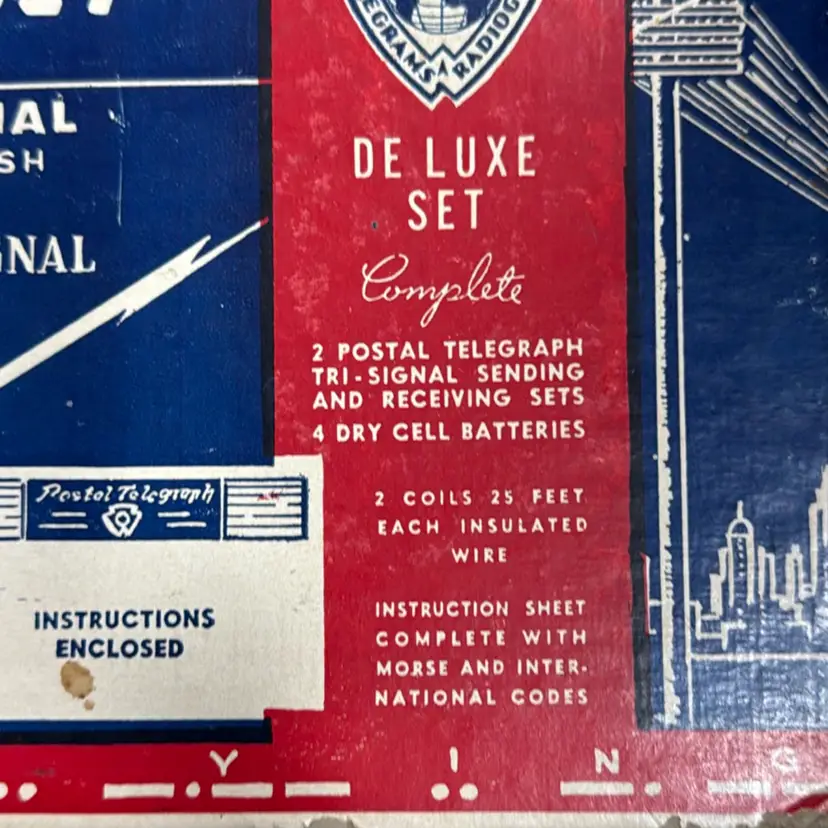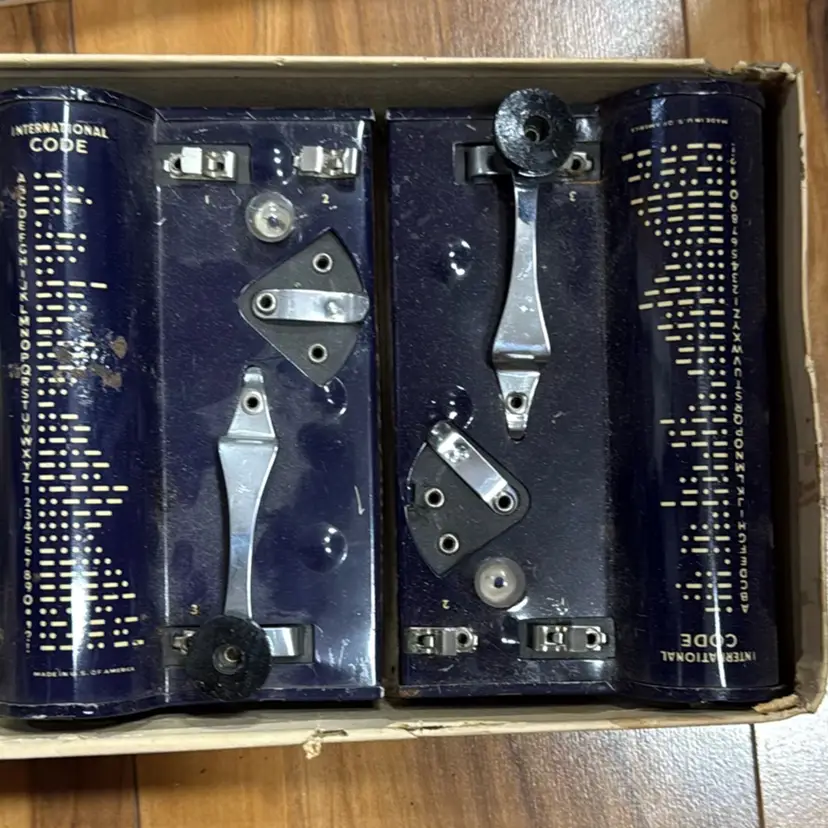 This is a vintage Elkay Tri-Signal Telegraph Set, a collectible toy from the 1950s designed to teach children about communication.