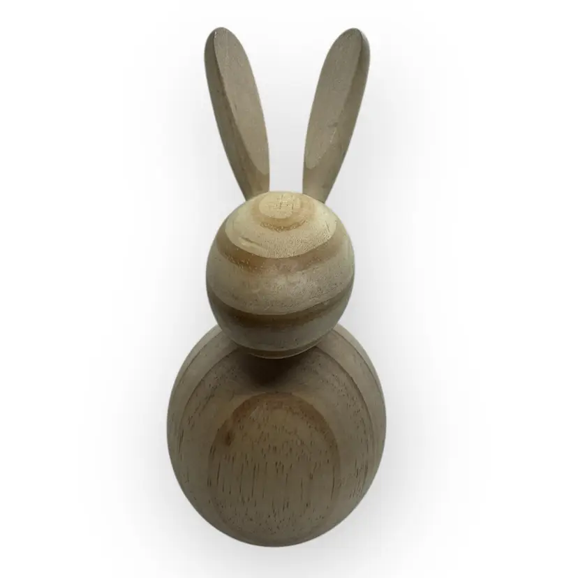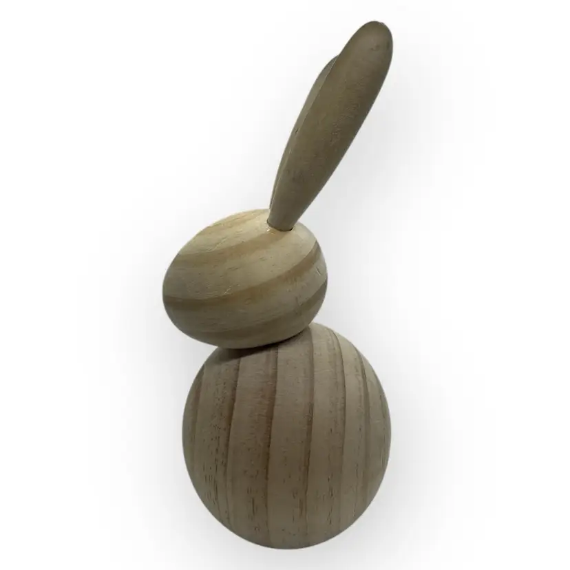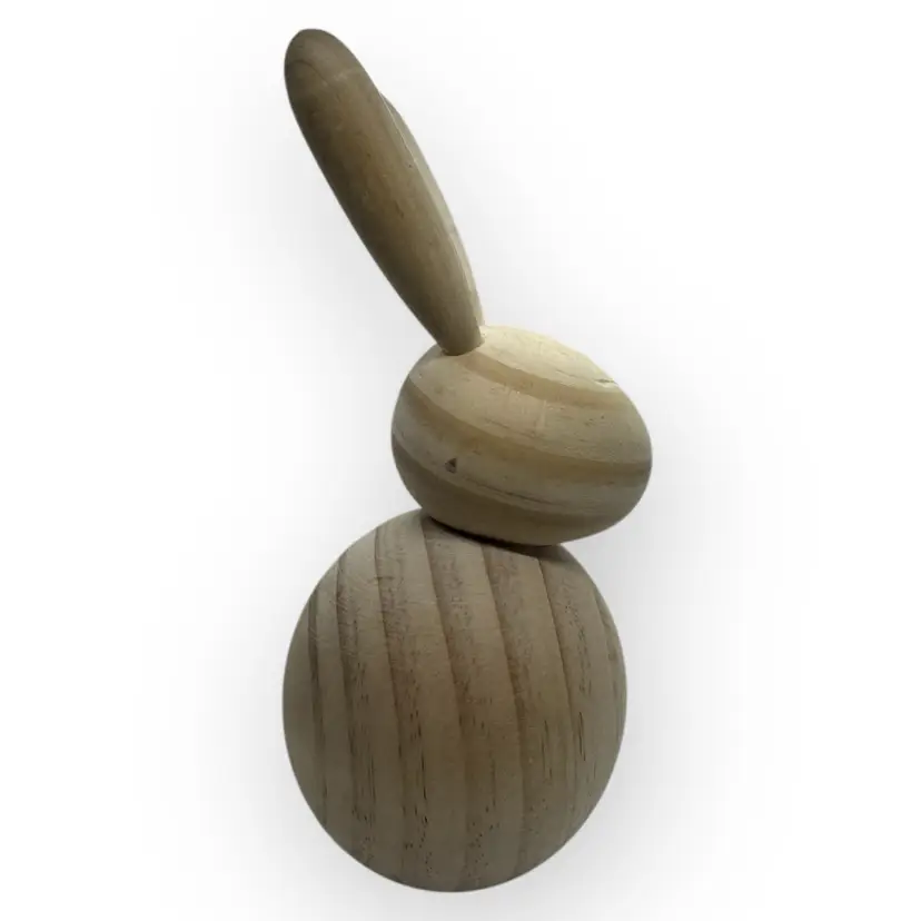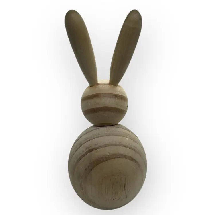 Wooden bunny with a couple of dings but still very lovable. Great for Easter tabletop decor. Bunny is 6.5” inches tall overall, and roughly 3” inches diameter. Comparable to West Elm small bunny, but unsure of brand. See pictures for accurate description.