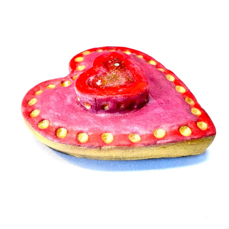 Valentines Day Heart Magnet Handmade Air Dry Clay Resin 1.5”
