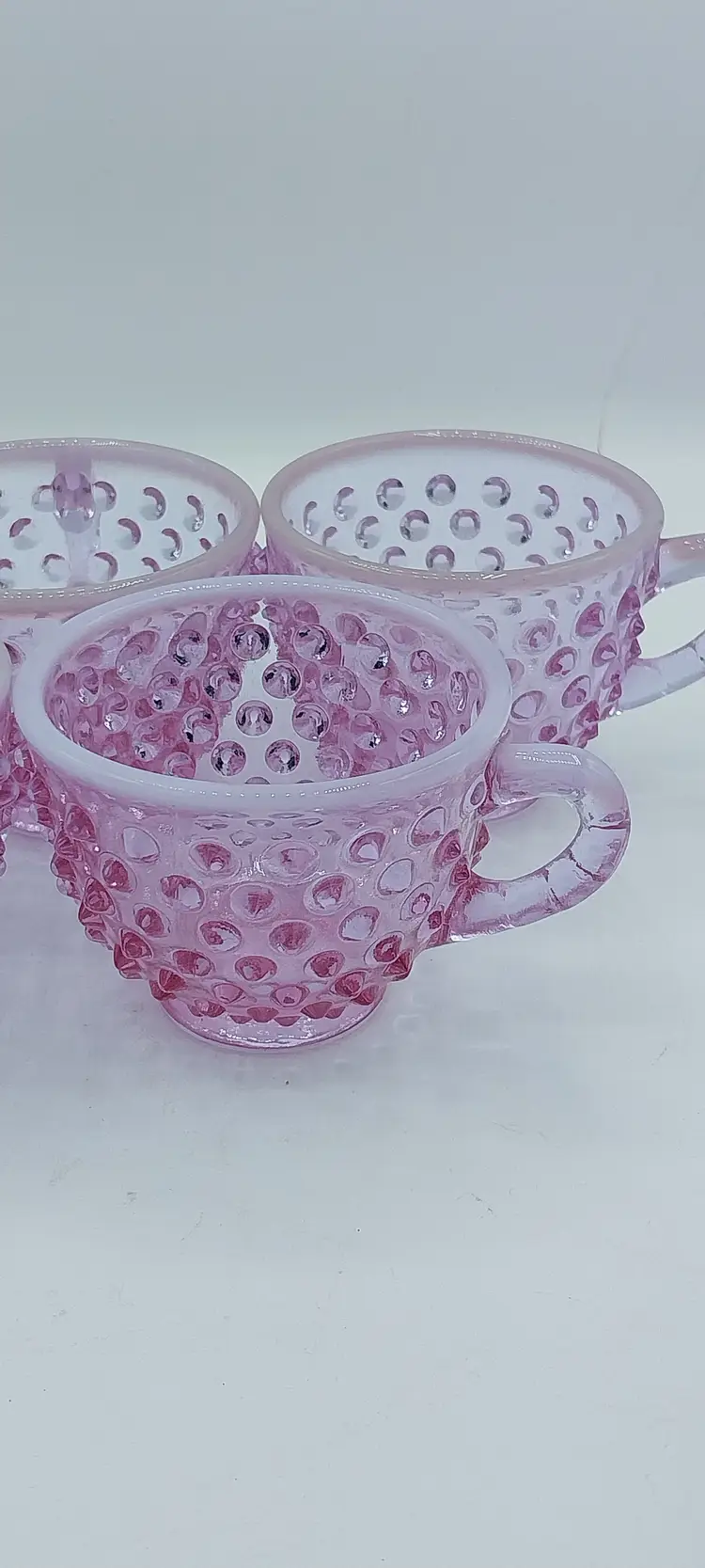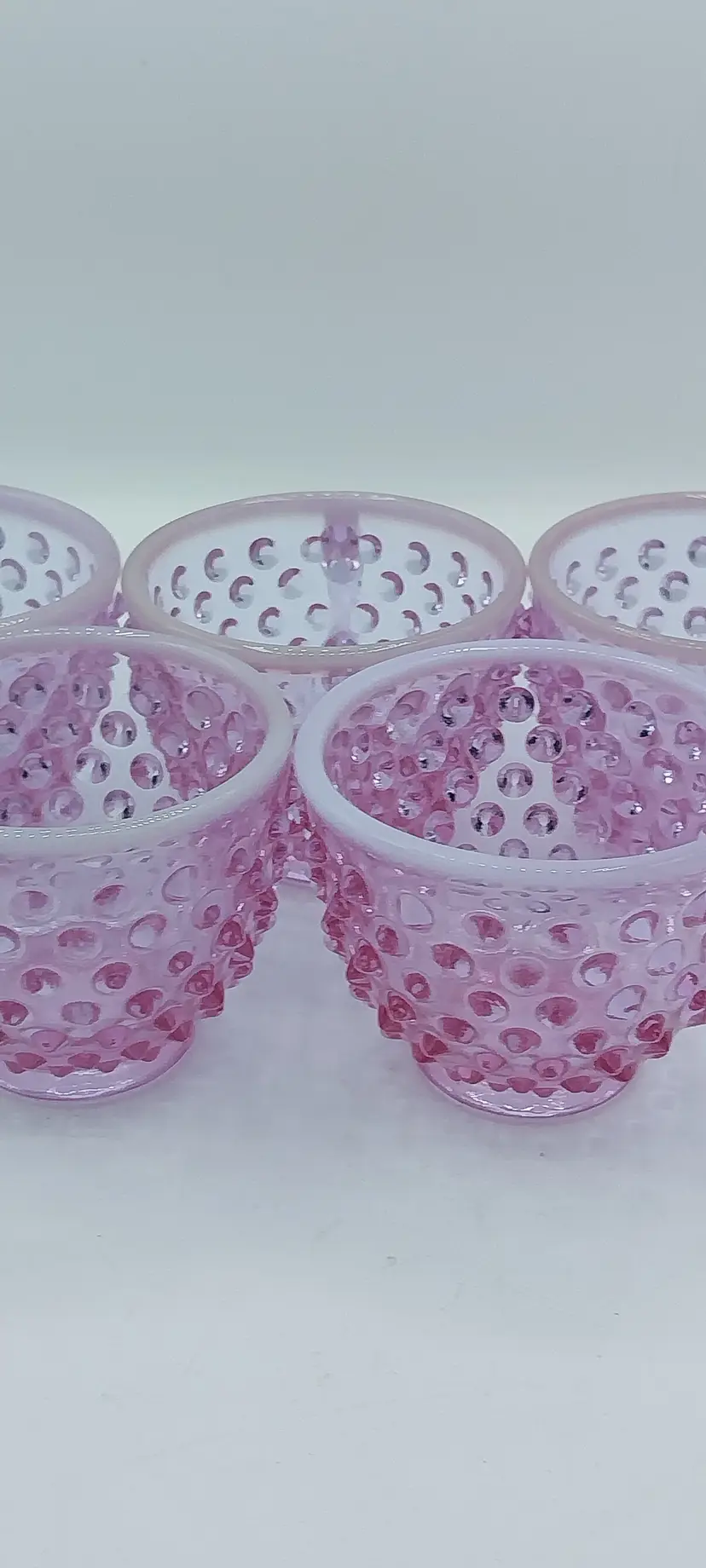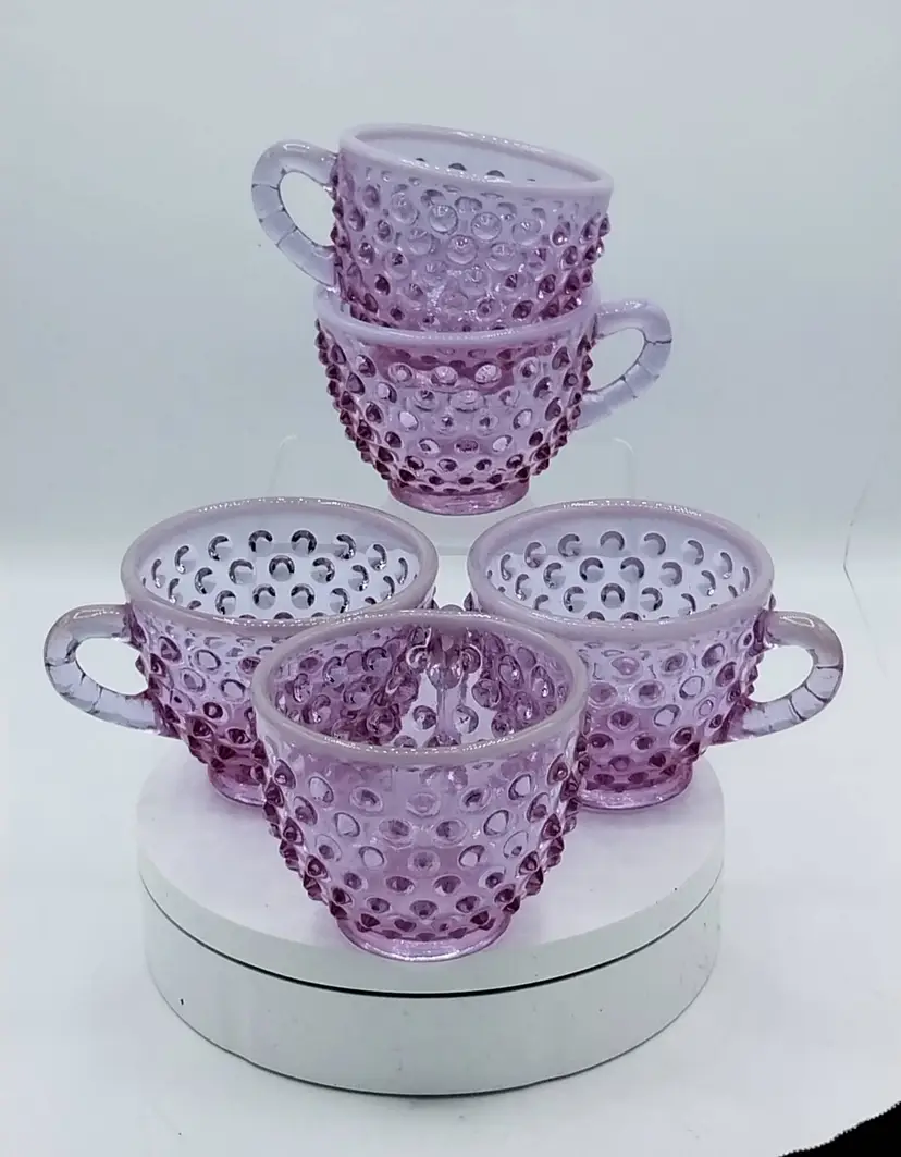VERY RARE Set of 5, Fenton Hobnail Opalescent Rose Magnolia Opalescent, Neodymium ~ Alexandrite, Punch Cups