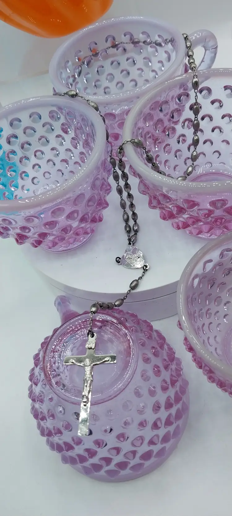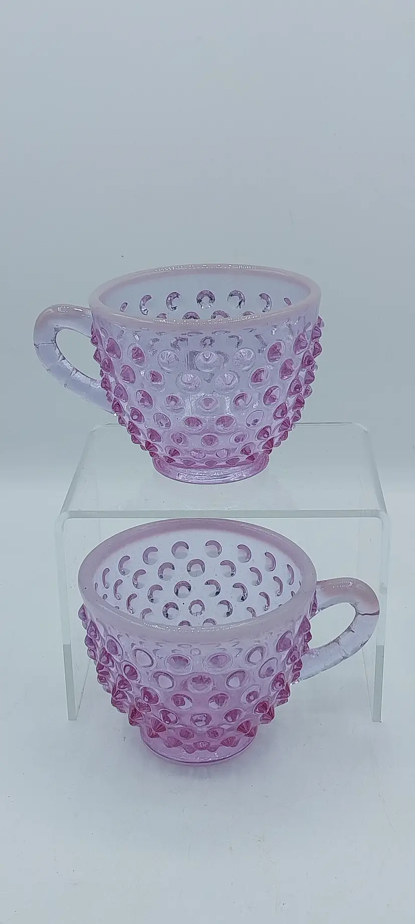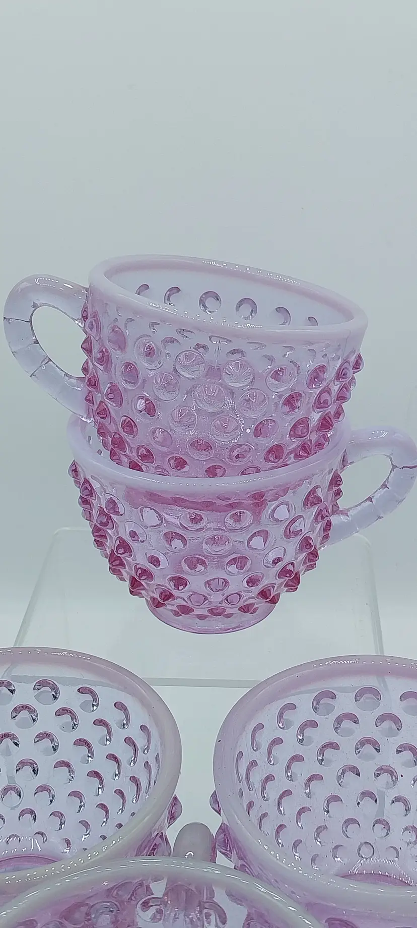 VERY RARE Set of 5, Fenton Hobnail Opalescent Rose Magnolia Opalescent, Neodymium ~ Alexandrite, Punch Cups