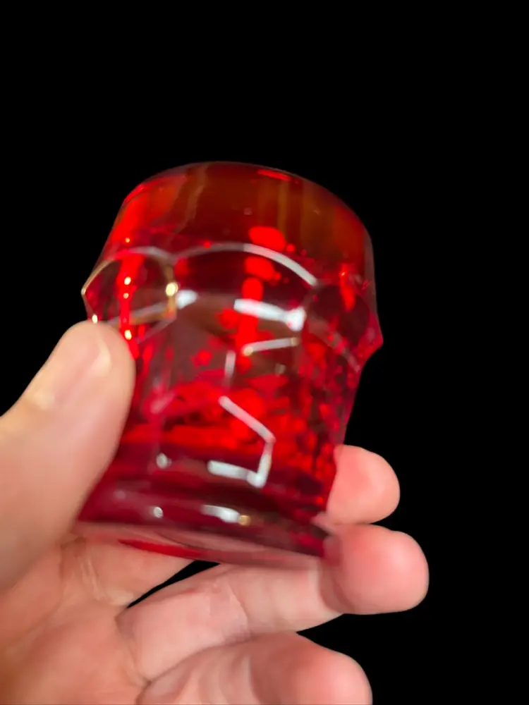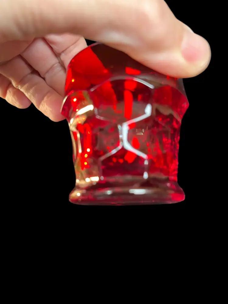 Beautiful red, beautiful pattern. Great addition to a Viking collection-or a great start to a Viking collection. It is in excellent vintage condition w/ no call outs. It measures approx 2.25"H, 2" Diameter, 4.2 Oz