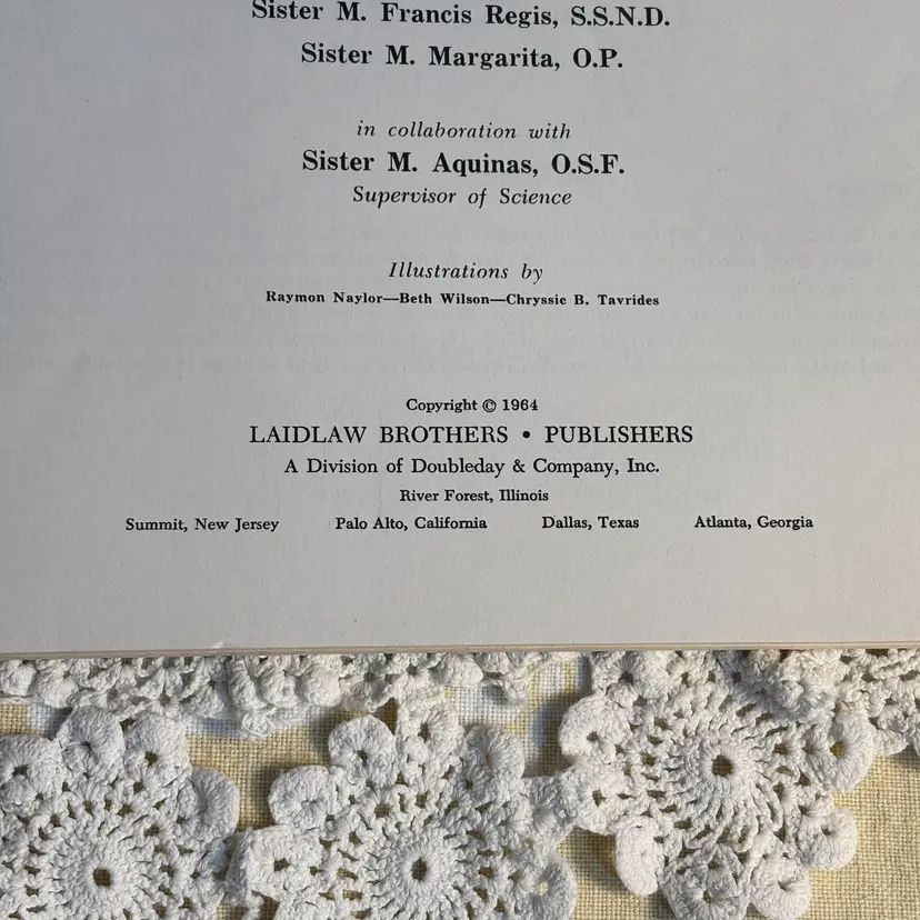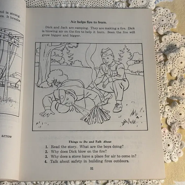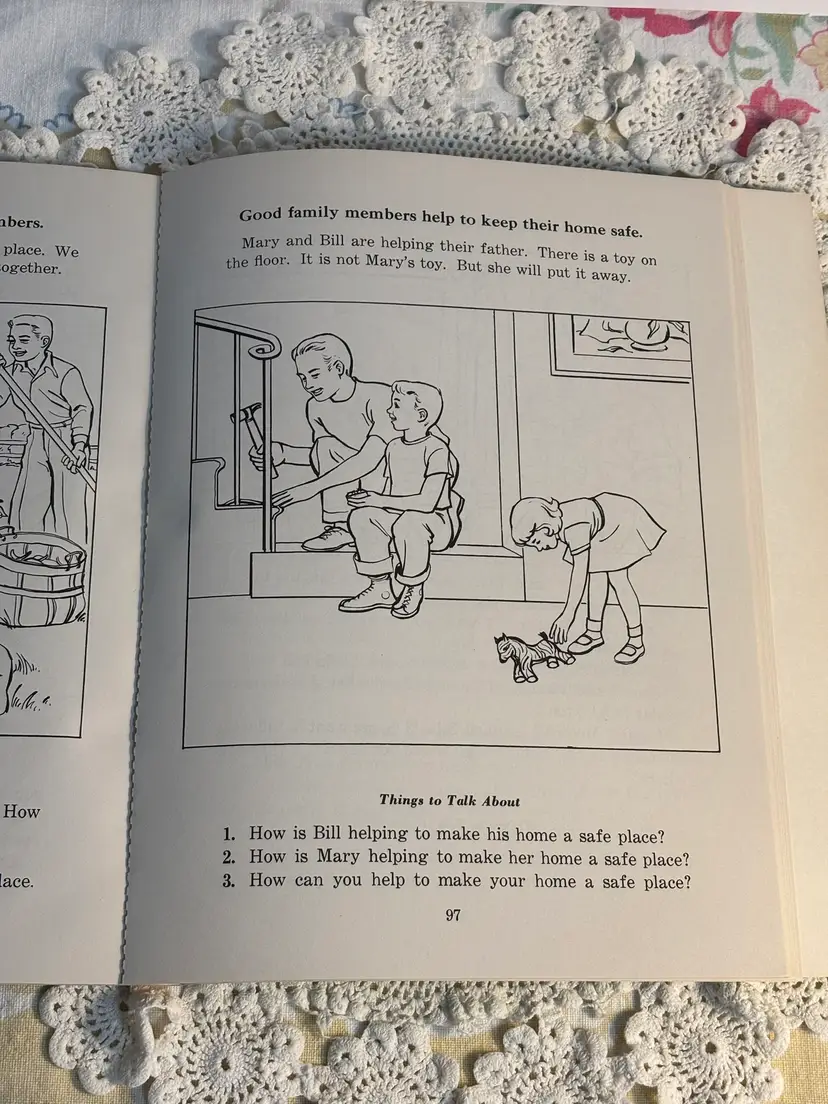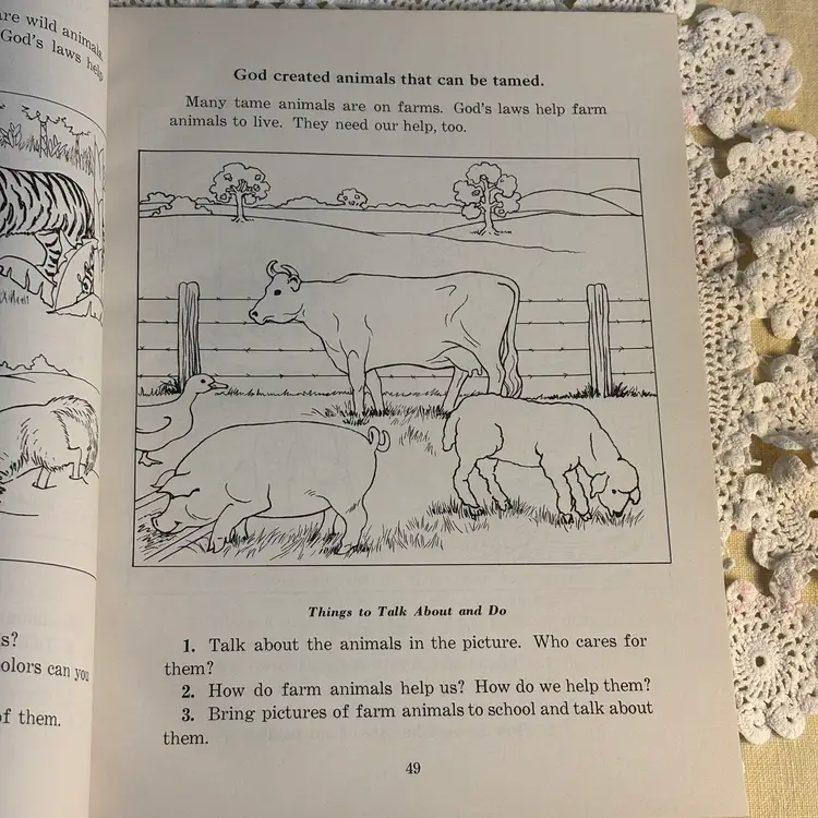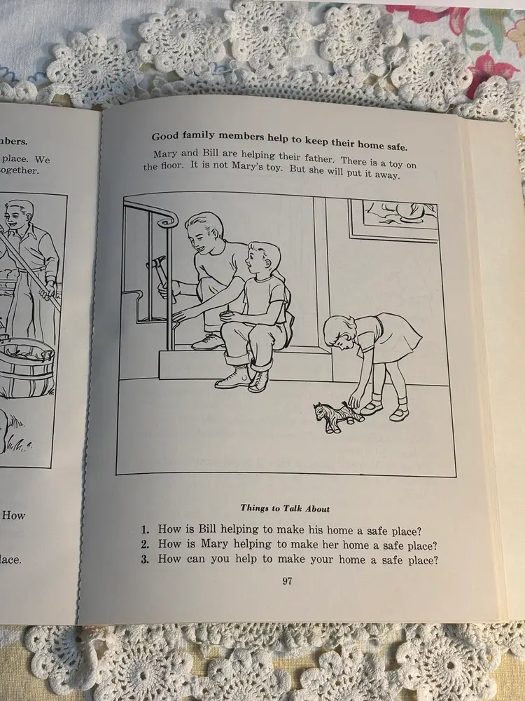 Great Graphics. 112 pages of pull out science with health and safety. Was a work book used as instructional purposes, assuming typical of using as homework. Has not been used and is in very good condition. Lots of lessons and experiments. Info about safety in the home. Cute and could be copied to keep the little ones occupied and learn also. Developed for the Christian Social Living Science Series, copyright 1964. This belonged to a student in 1966.