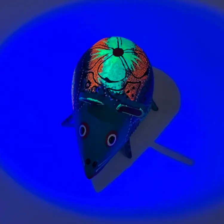 15 - Vintage Alebrije Mouse Missing Tail. Glows! 2.25”