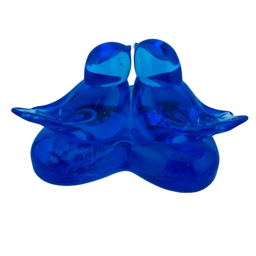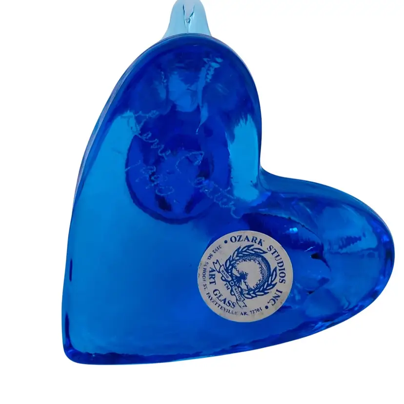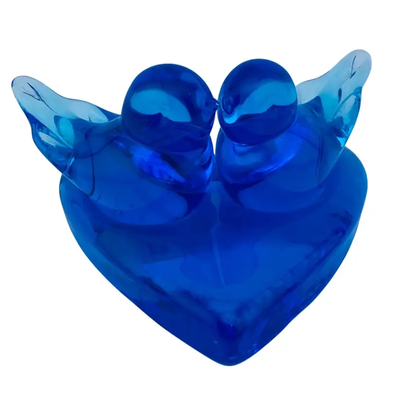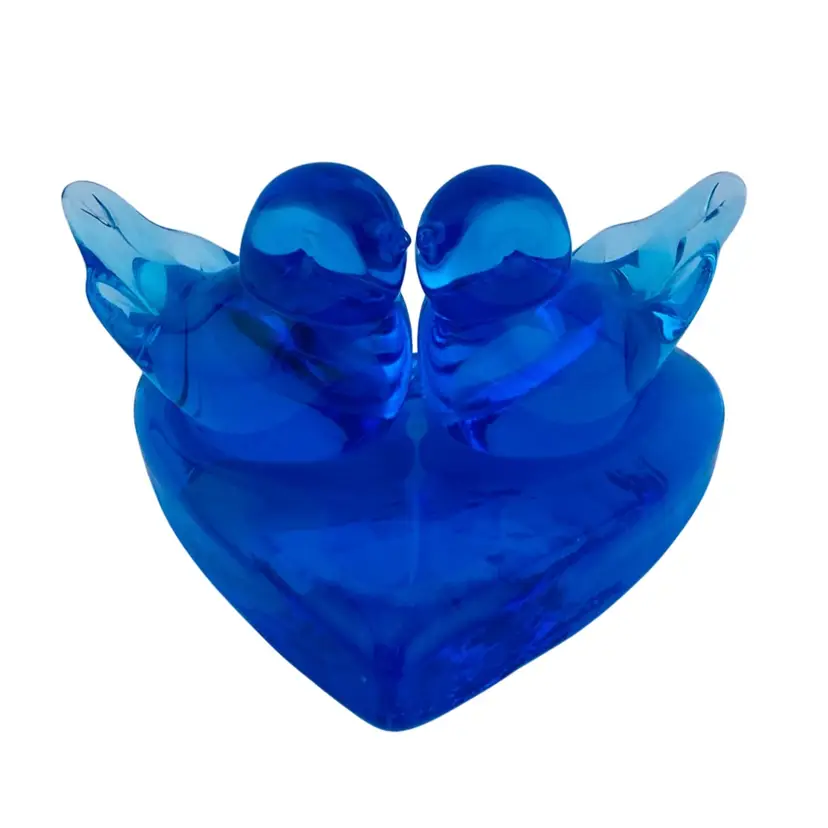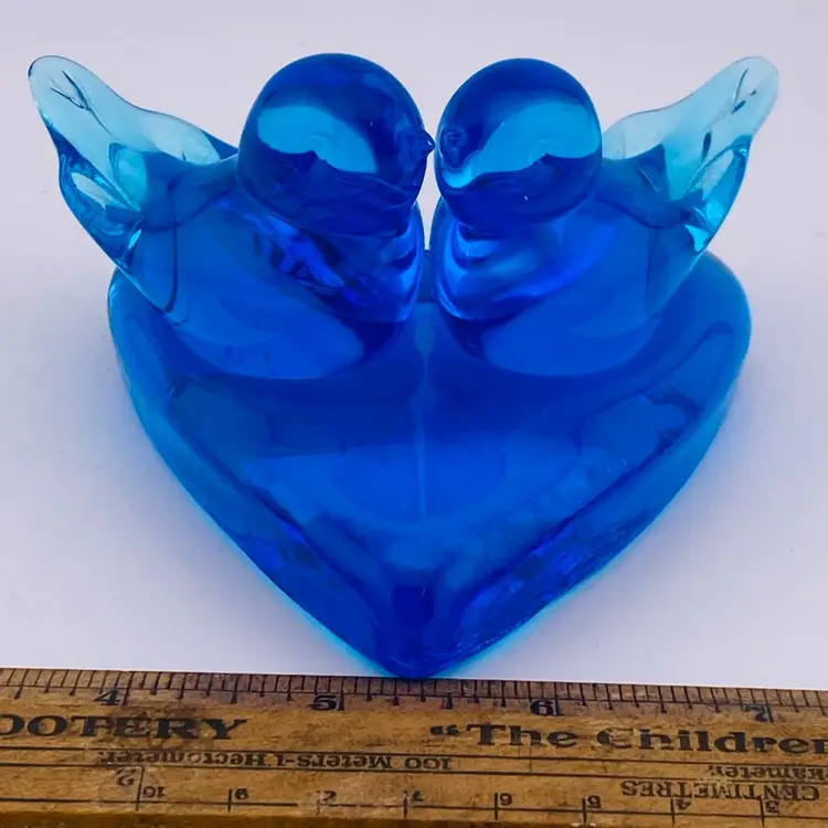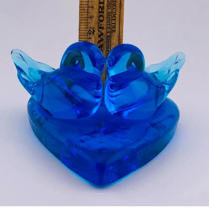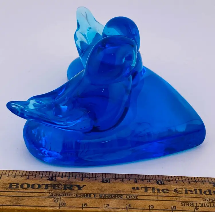 Vintage Bluebirds Of Happiness Art Glass Paperweight Signed 1990