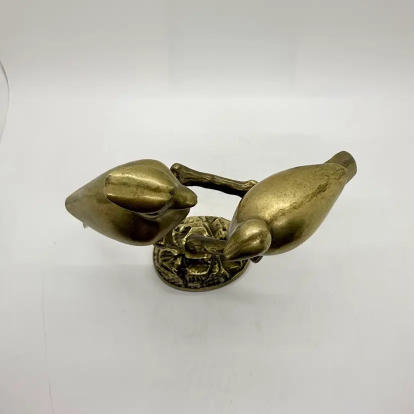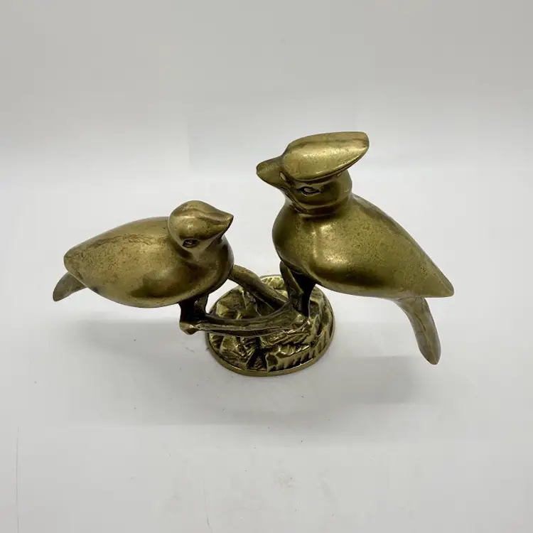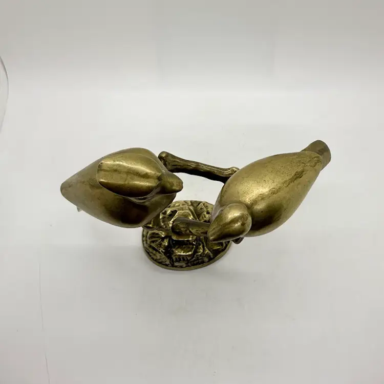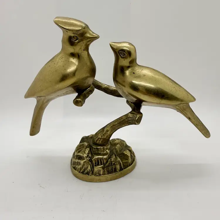 Vintage Brass Metal Cardinals Love Birds on a Branch Figurine MCM Decor