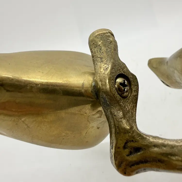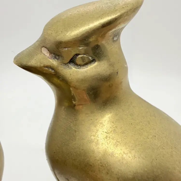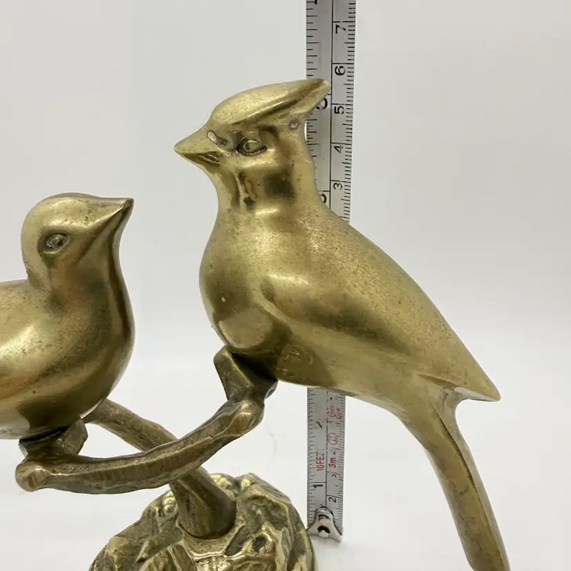 Vintage Cardinals/ Love Birds Pair on a Branch Brass Metal Figurine Mid-Century Modern Decor. Signs of age, wear, and use. Patina and tarnishing to the brass all-over. Light surface scratches and scuffs. Screws easily loosen. Please see pictures.
