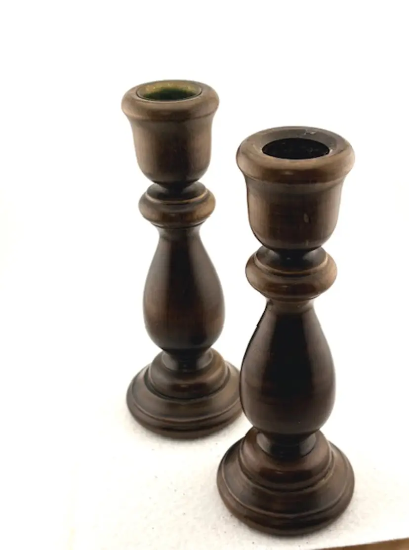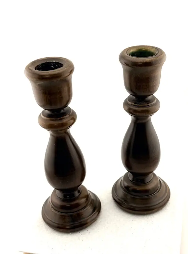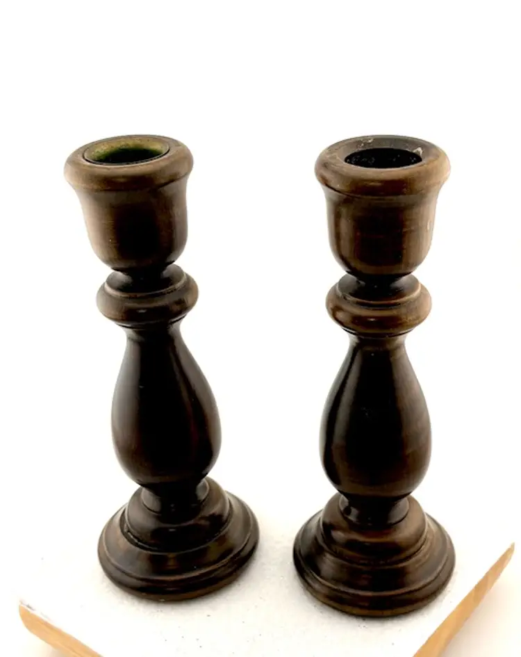 Vintage Brown Wood Candlestick Holders 6.75" Tall x 2.5" Wide