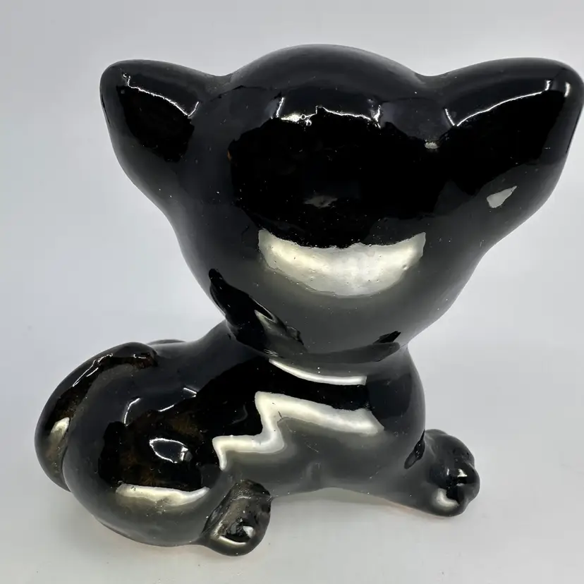 Vintage Ceramic Black Cat 50's Decor Figurine Hand-Painted Made In Japan