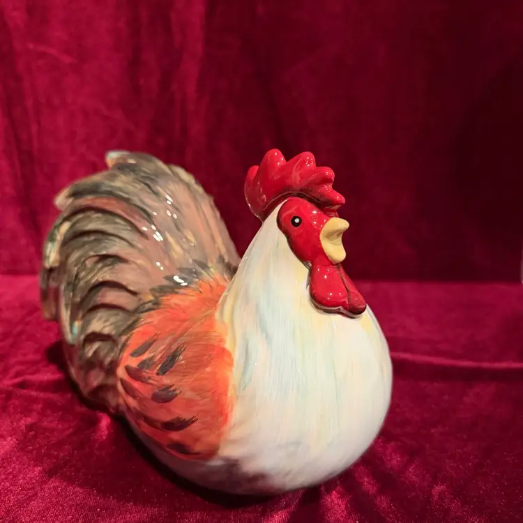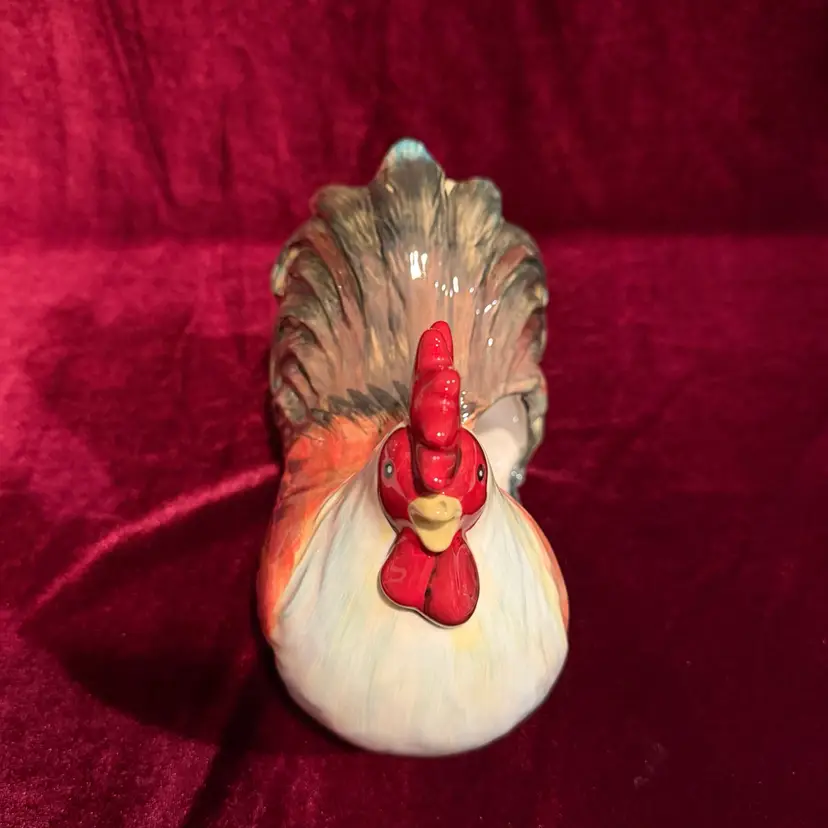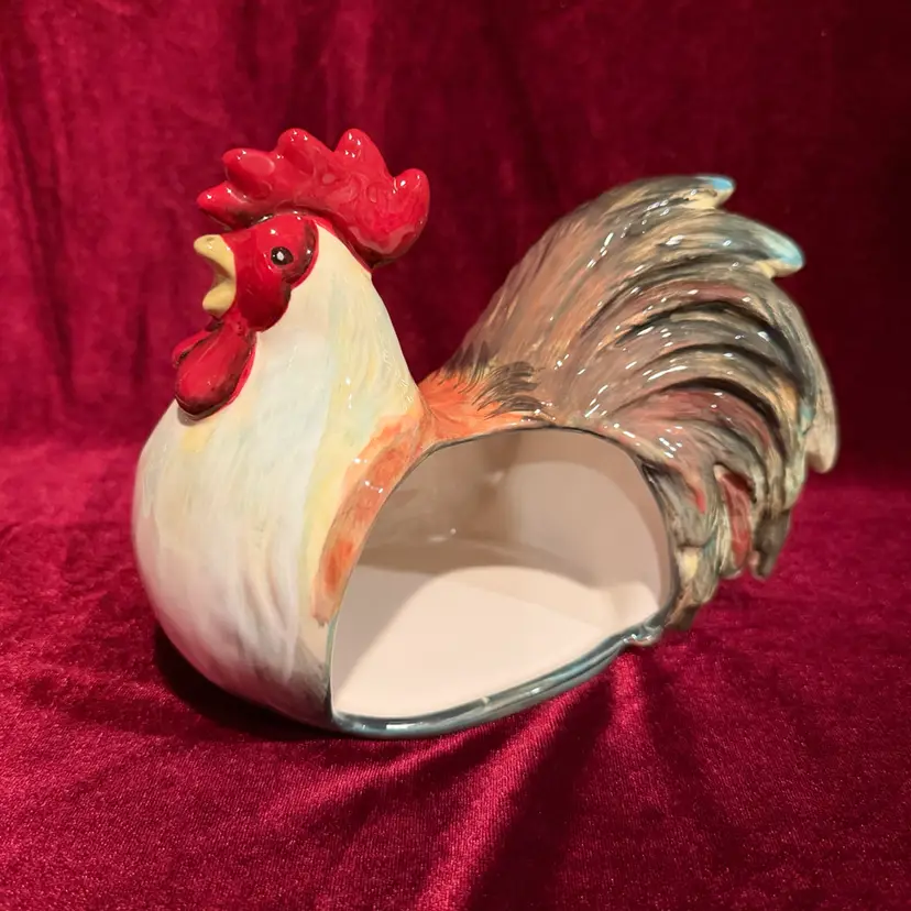 Vintage, Ceramic Cracker Barrel Susan Winget Break of Dawn Rooster Sponge Scrubby Holder figure.