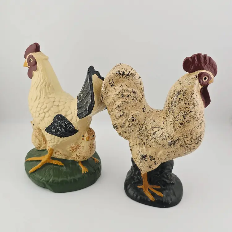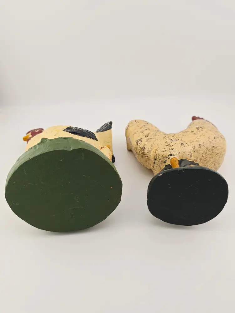 Good vintage condition. Small areas of minor scuffing no chips or cracks. Rooster is 6.5 inches tall. Chicken is 6.
