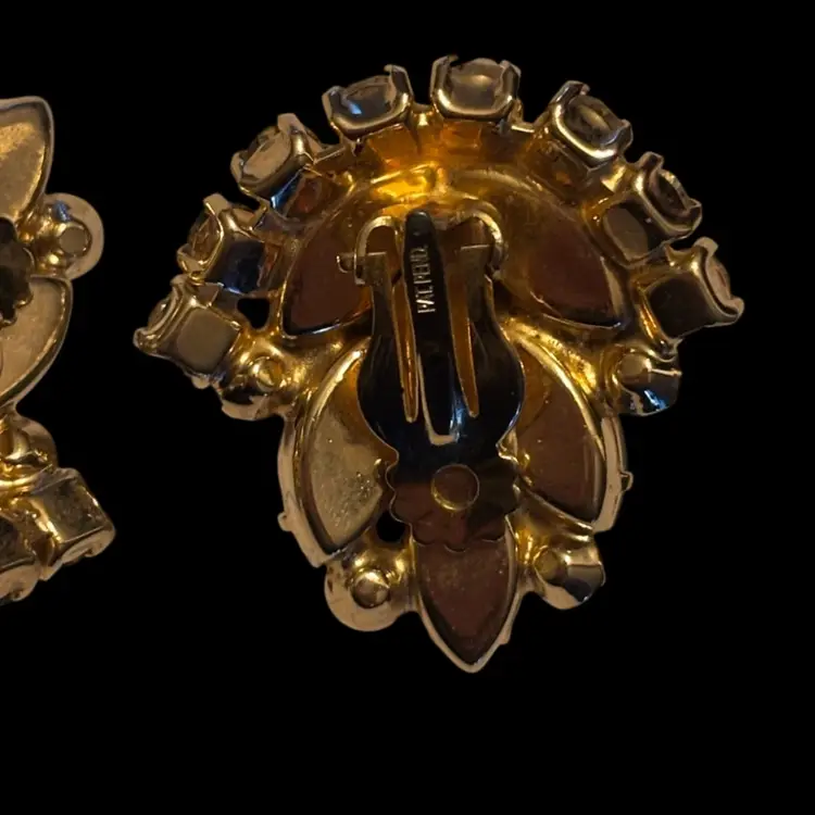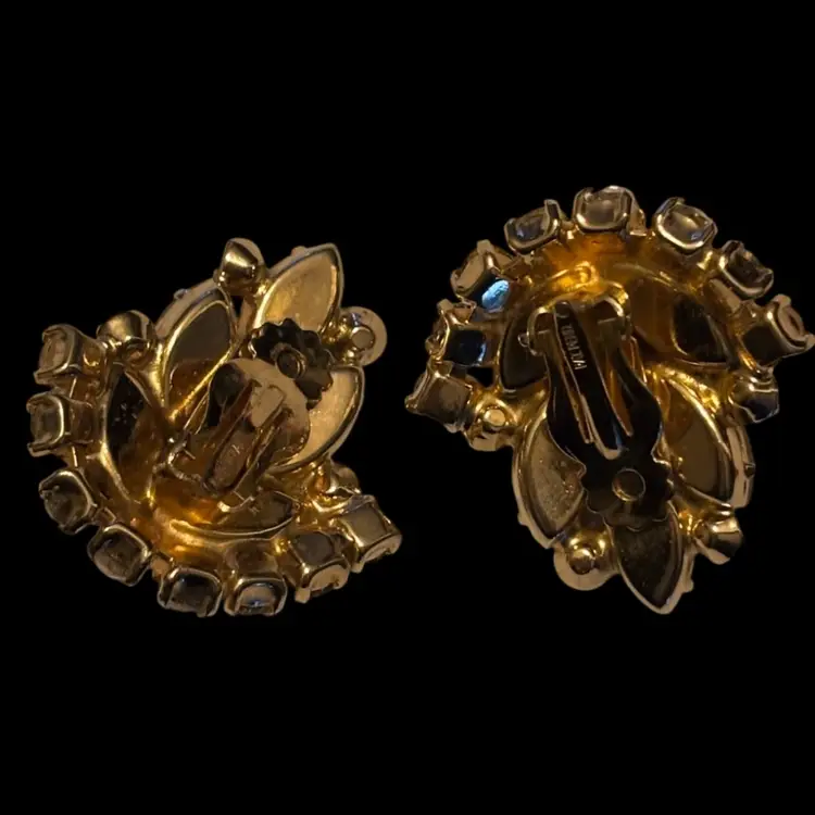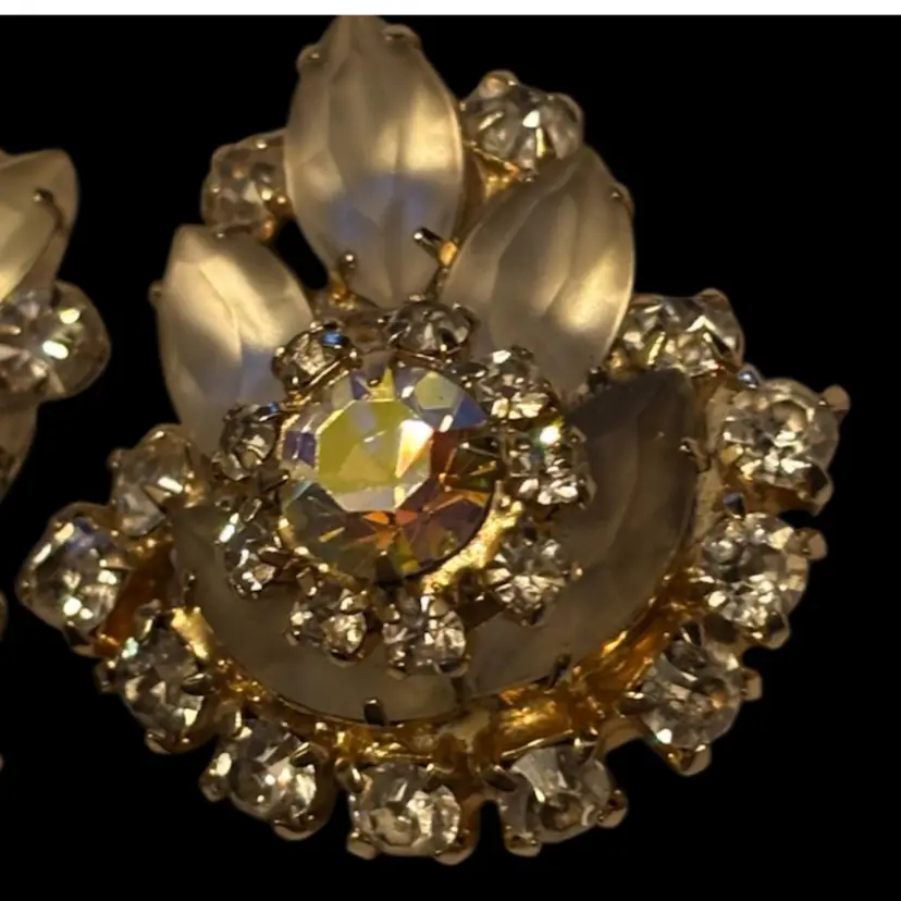 Beautiful vintage clip-on earrings Frosted and AB rhinestones, gold toned. Google says they are Julianna, not confirmed. In nice condition. 1.5”