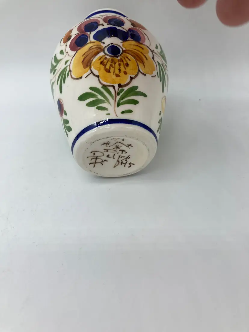 Vintage Delft De Delftse Pauw Hand-Painted Ceramic Vase