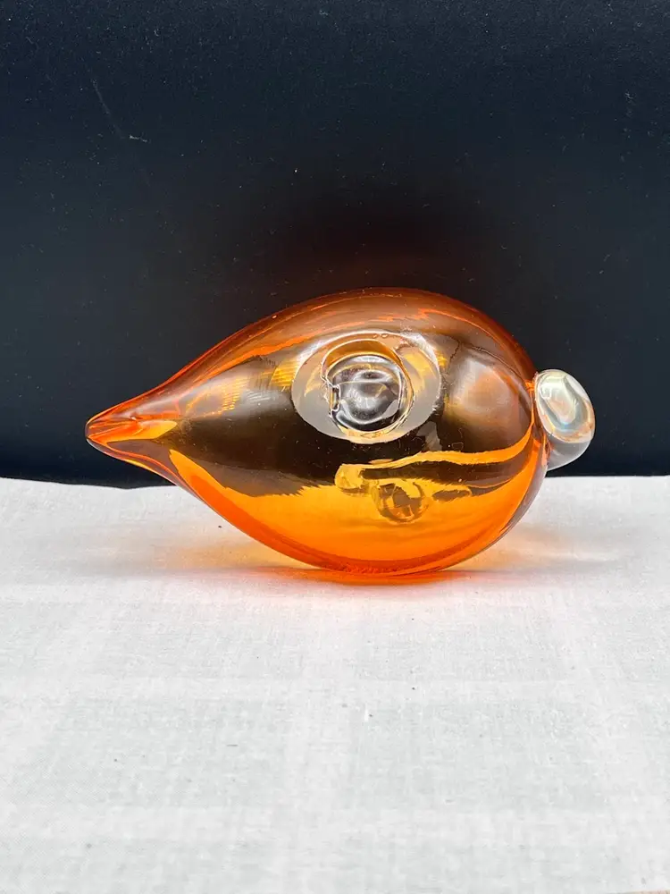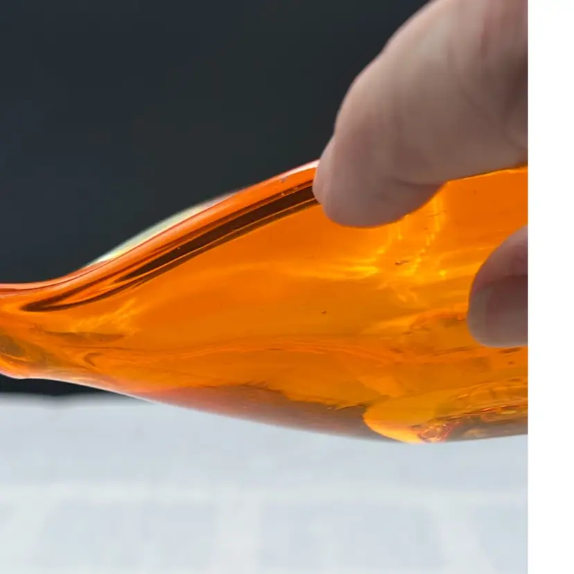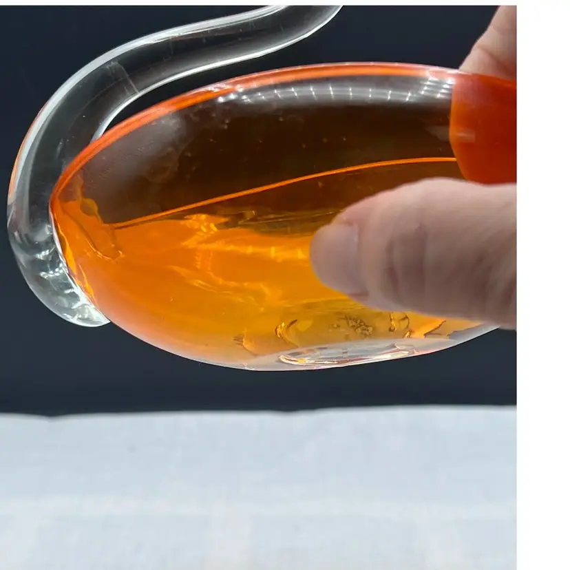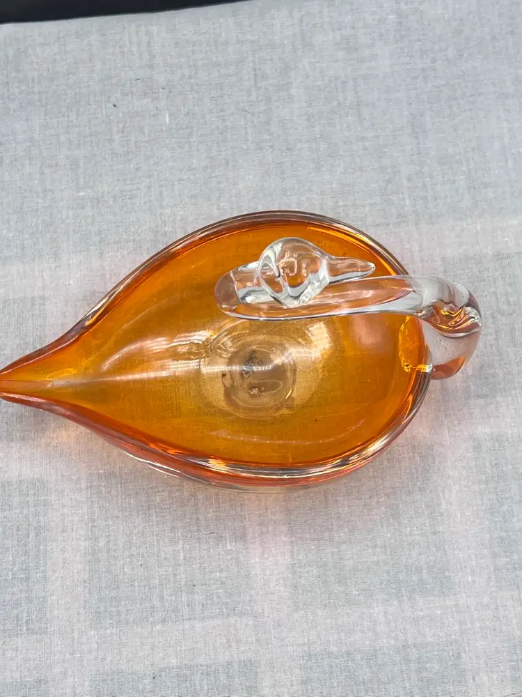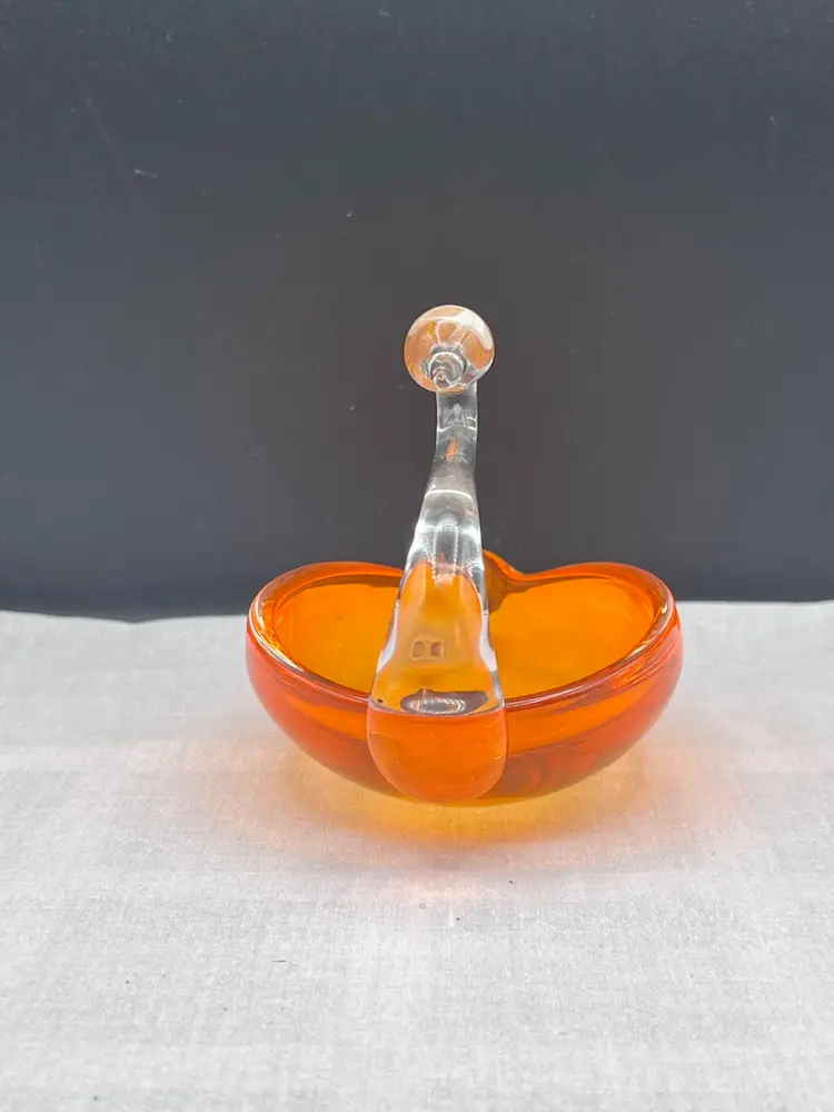 Beautiful Vintage Duncan & Miller Art Glass Swan Bowl/Candy Dish/Ash Tray Orange & Clear Piece is in very good vintage condition, no chips or cracks, there are a few minor surface scratches as noted in pictures Just under 5" tall x 7 1/4" wide