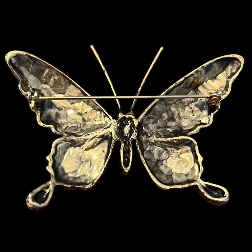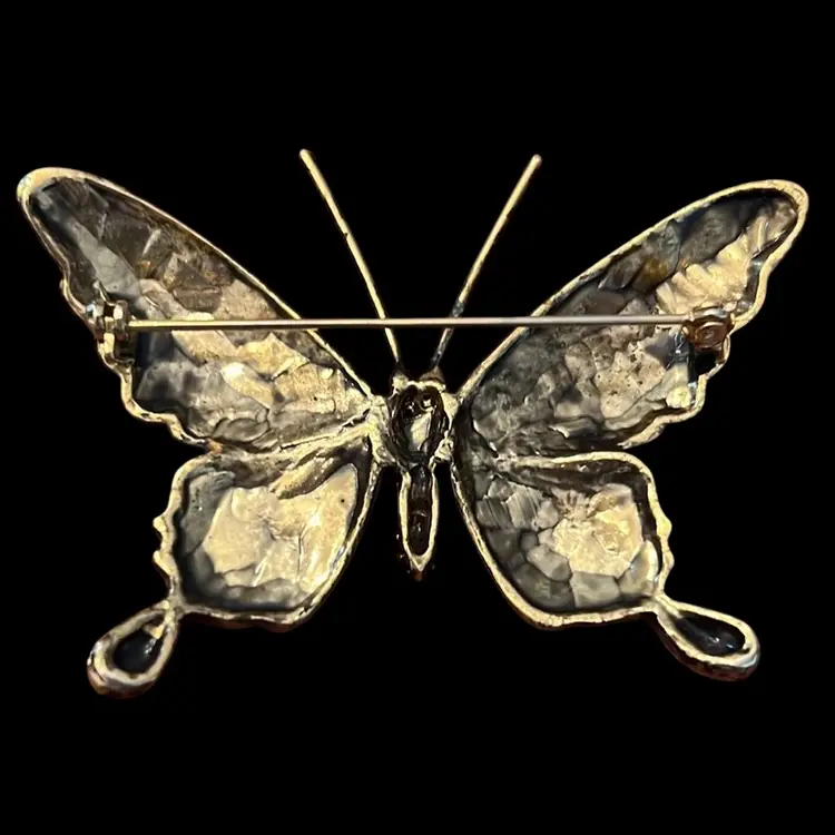 Vintage Enamel Butterfly Brooch Pin 3” x 2.25”
