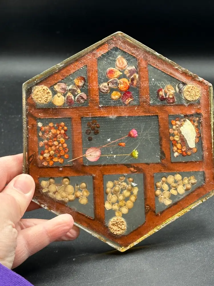 Vintage Gamut Designs Ladybug Resin Acrylic Trivet Lucite Flowers Seeds 1960s