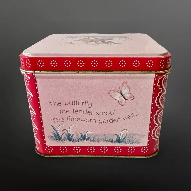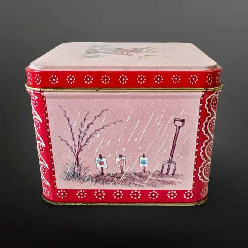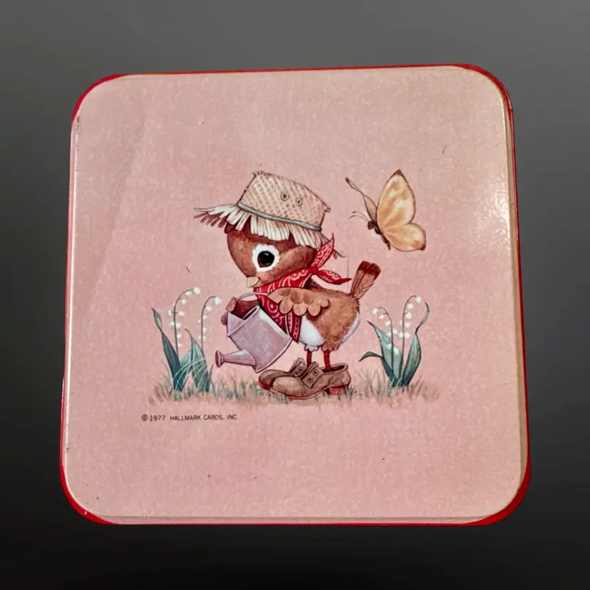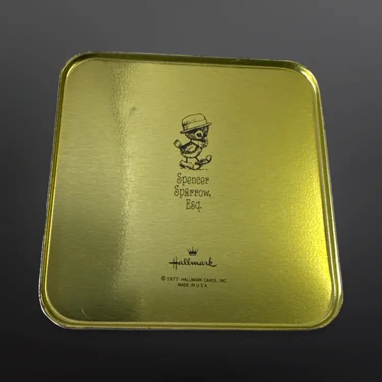Adorable vintage Hallmark Spencer Sparrow Esq. puzzle in tin. 150 piece puzzle featuring an adorable bird watering flowers. They are in good vintage condition; the tin has some fading/wear due to age. Tin measures approximately 4” L x 4” W x 3.5” H