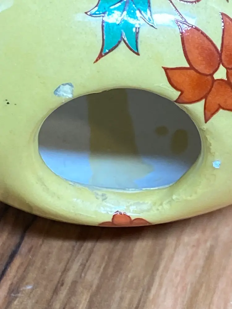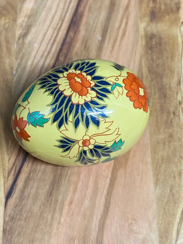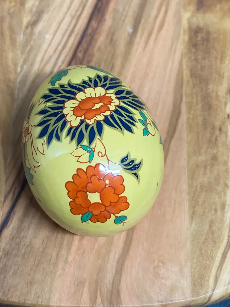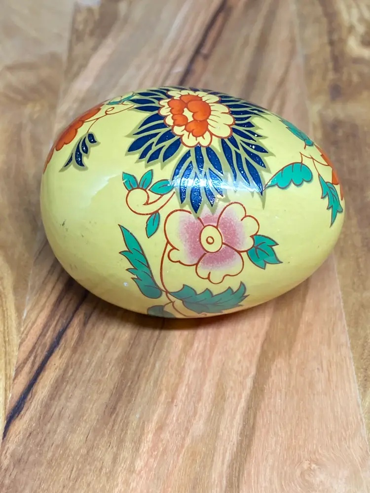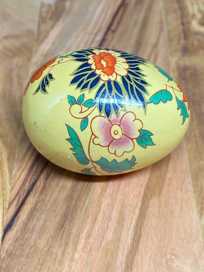 Vintage Hand Painted Egg - Yellow Base w/ Floral Design, 2.25" Tall