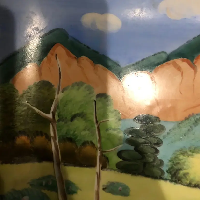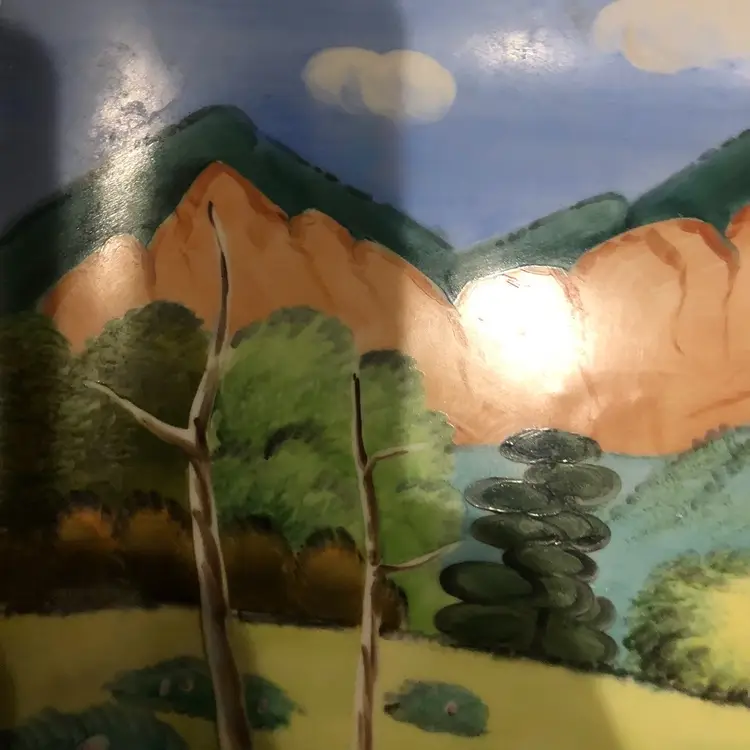 π 18x14β Porcelain Green Fields Trees & Mountain