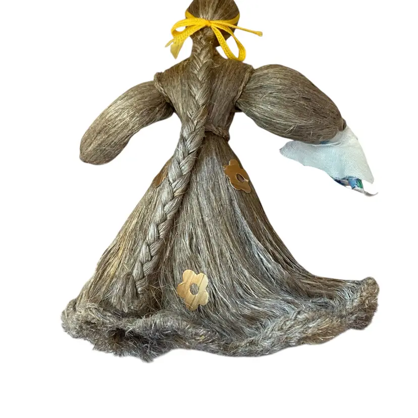 Vintage Handmade Russian Doll Wooden Head Straw Body Dress Folk Art 1960's. 7in tall