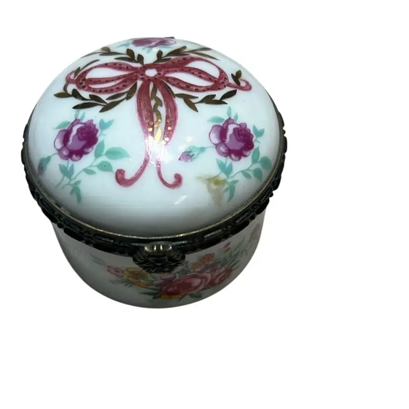 Vintage Hinged Trinket Box With Bow And Flowers
