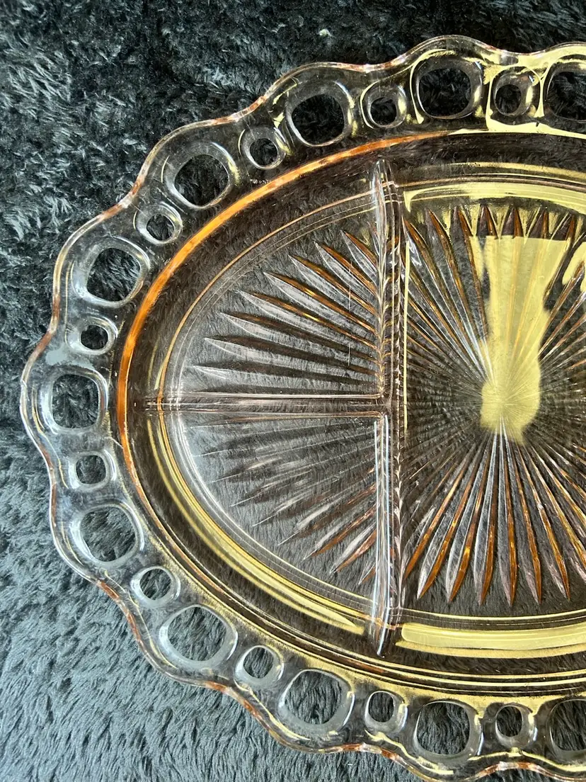 Vintage Hocking Laced Edge Old Colony 5 Section Divided Relish Dish Pink 1930's