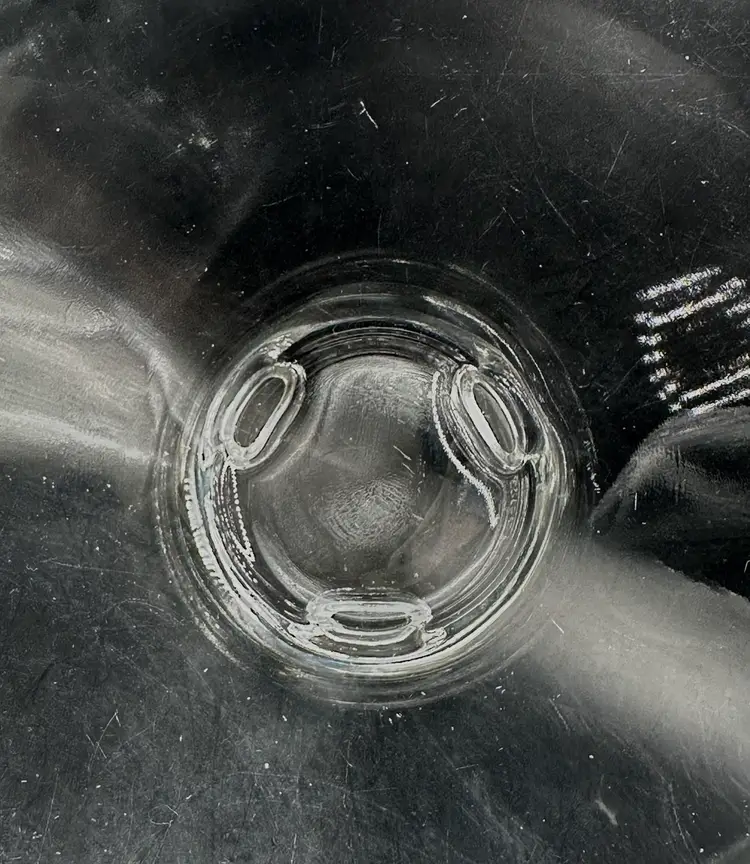 Blown glass, vintage. No chips or cracks, minor surface scratching from use (best shown on 4th image).