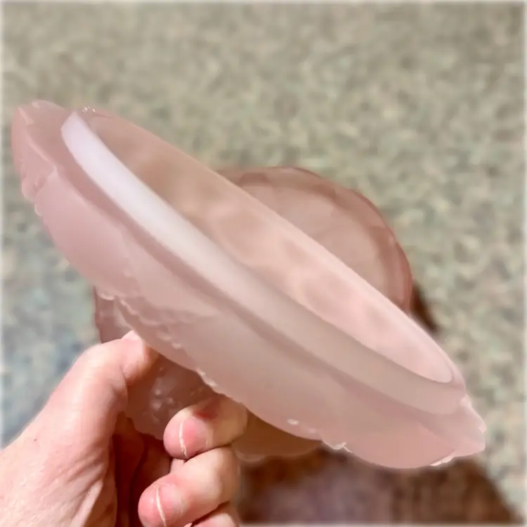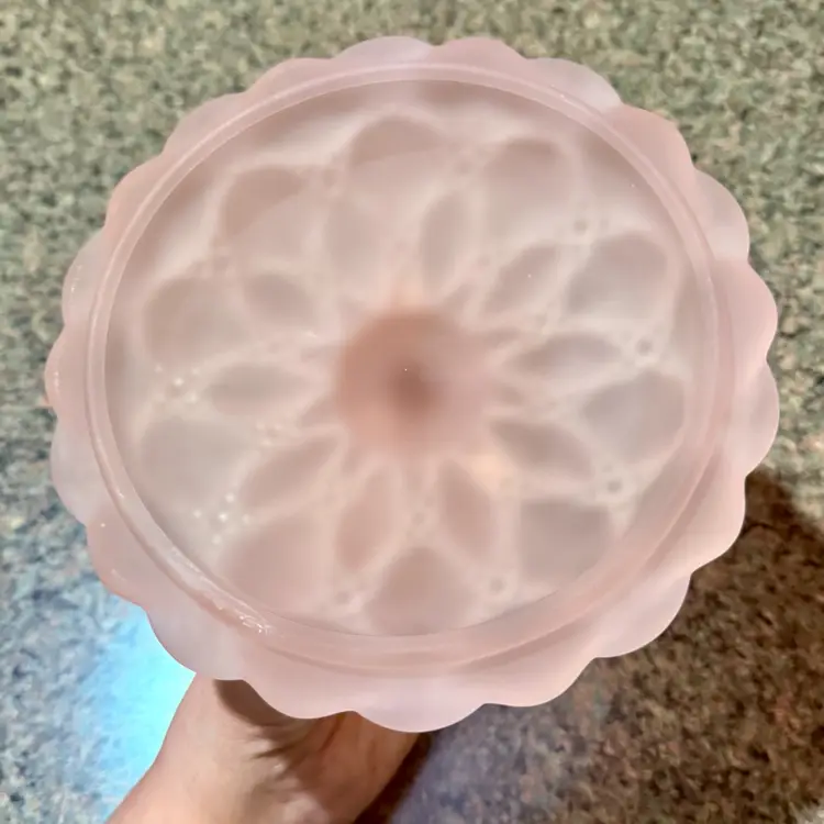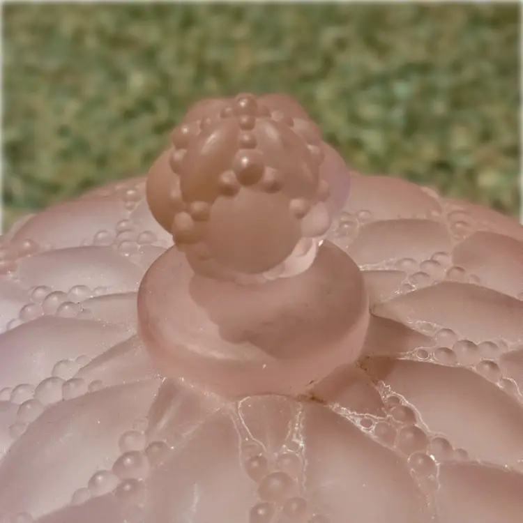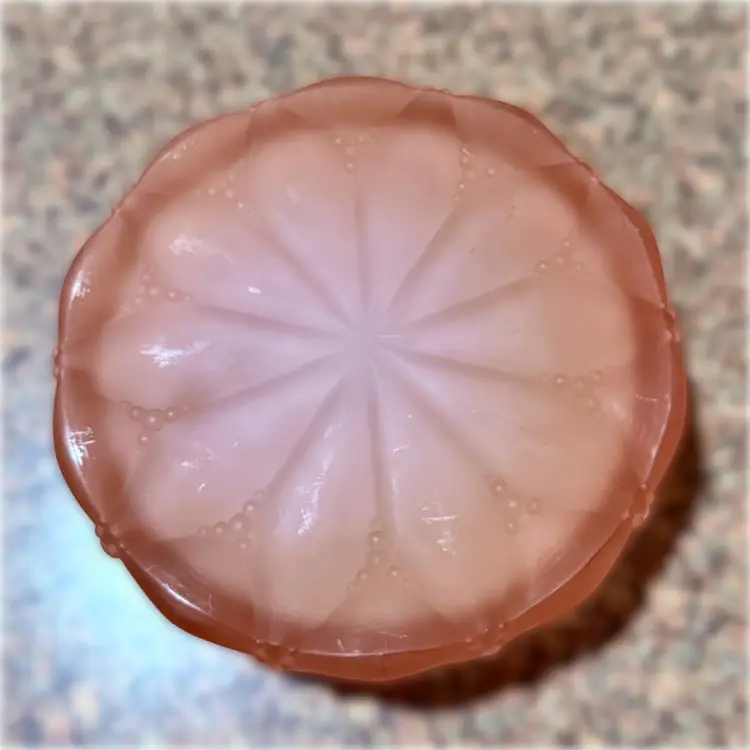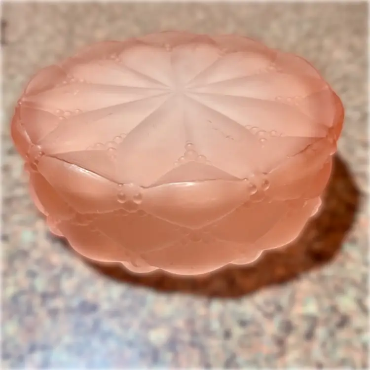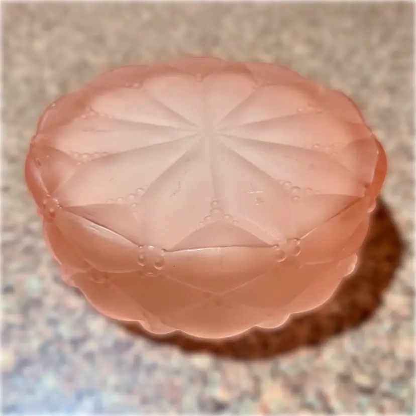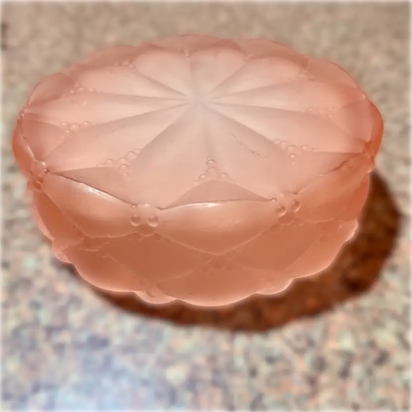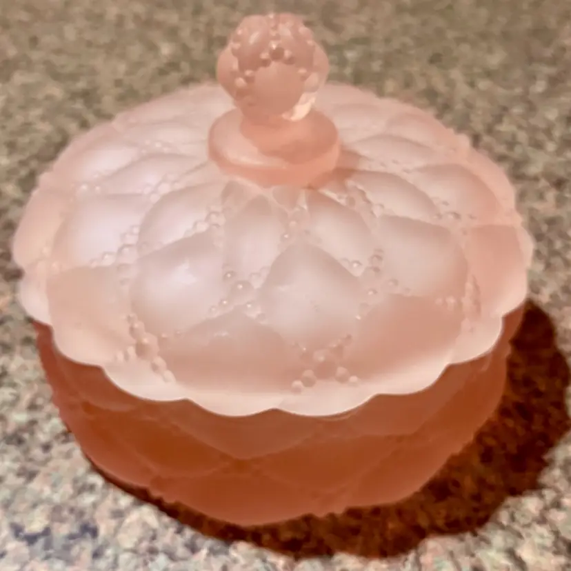 **there are some spots of rub marks where the satin finish has “rubbed” off, I suppose you’d call it? From sitting on a vanity/table top, etc. There is a minor rub mark spot on the underside of the lid as well (as seen in the photo).