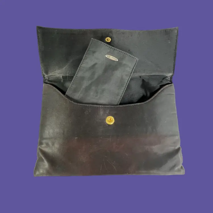 Vintage Ingber & Co. Black Satin Evening Clutch Purse. Bow with Rhinestone Bling. Includes a Silhouette Black Eyeglass Case. *See Condition*