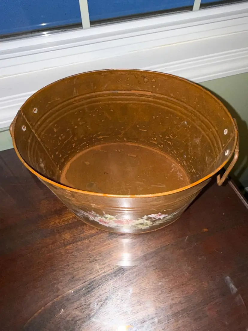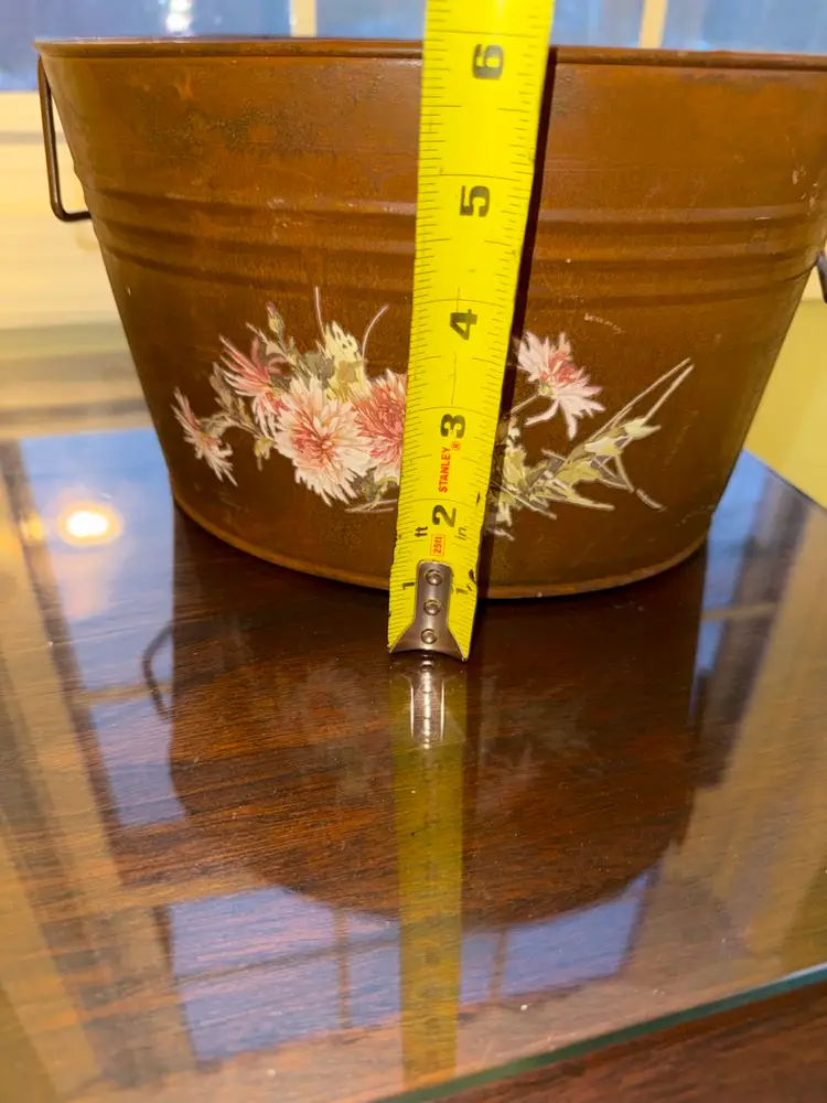 This vintage-inspired metal tin features a beautiful floral design on the front, adding a touch of charm to its country style. Its small size makes it a versatile container for storing small items, while the brown color and metal material contribute to its rustic aesthetic. Perfect for adding a touch of antique flair to any room, this tin is both functional and decorative.