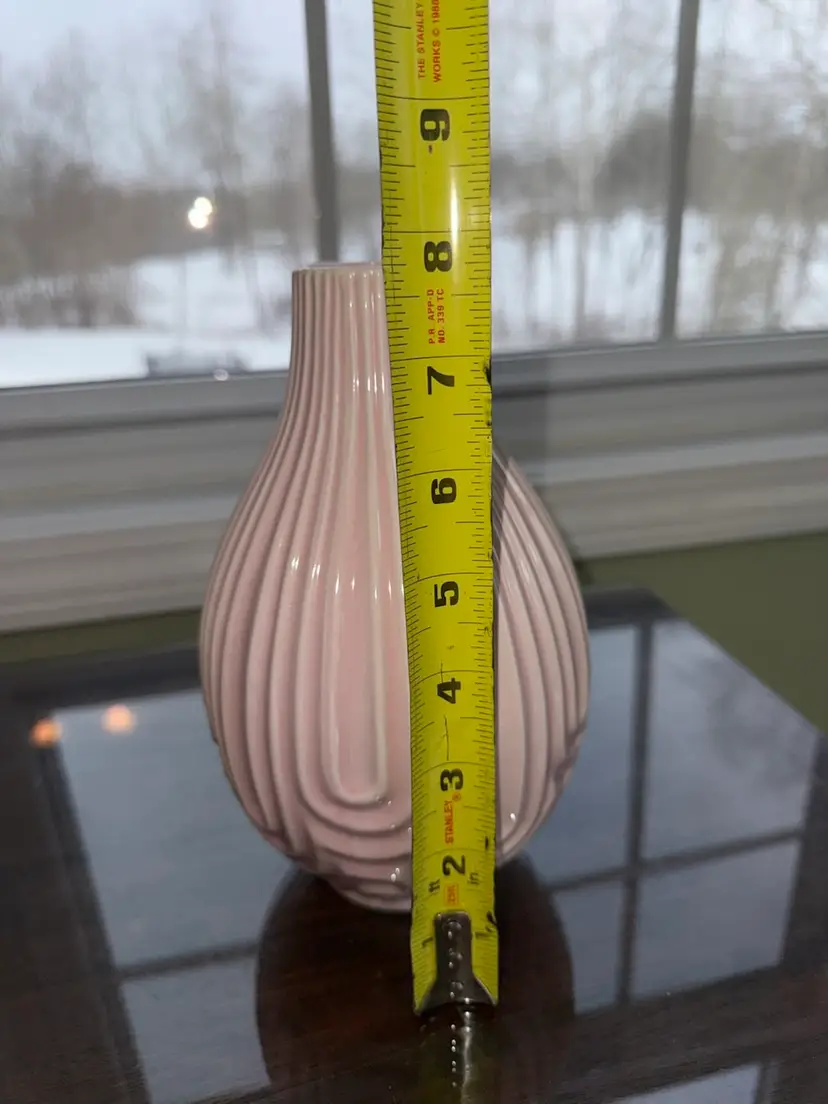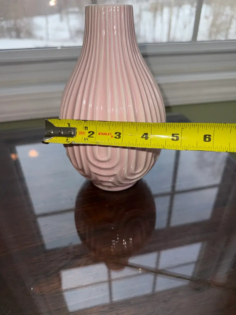 This vintage inspired pink ceramic vase is a charming addition to any home décor. Handmade with a French country theme in mind, this original piece is perfect for all occasions. The delicate details and porcelain material add a touch of elegance to any space. Weighing 1.5 lbs, this vase is a piece that will surely be a conversation starter in any room.