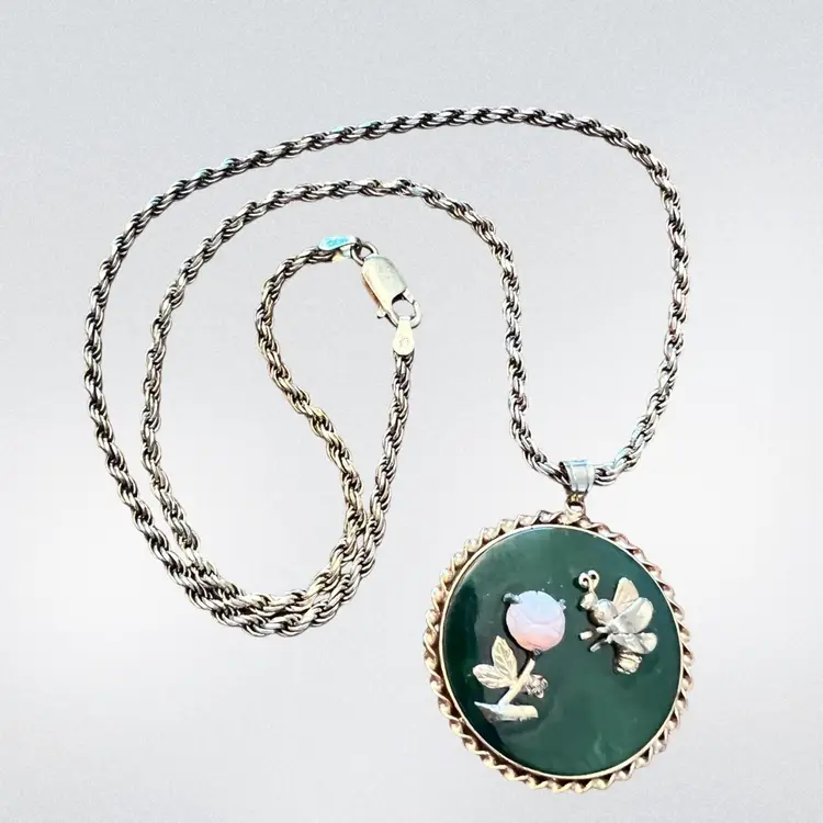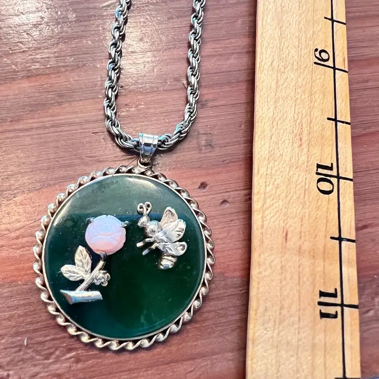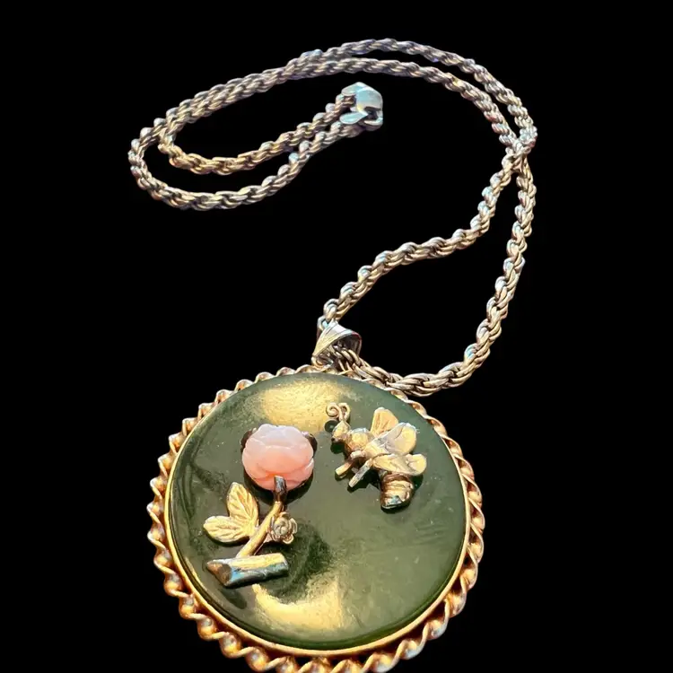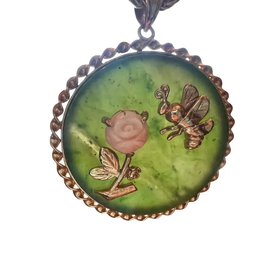 So stinking cute! Bee is heading toward pink carved rose. Gold filled bee & trim. No damage.