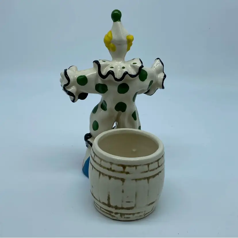 #4915 Vintage Japanese ceramic clown figurine with a barrel Planter