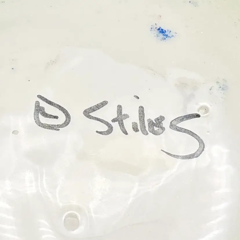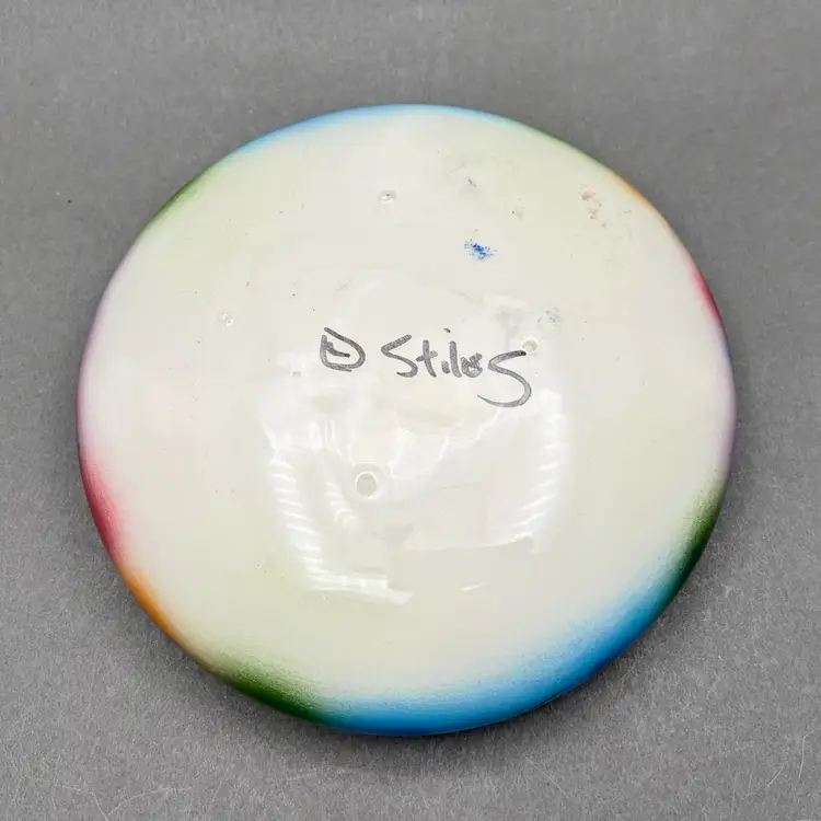 • Measurements: 6 3/4” diameter, 2” high • Material: Ceramic • Maker: Judith Stiles (Signed "Stiles" on bottom)