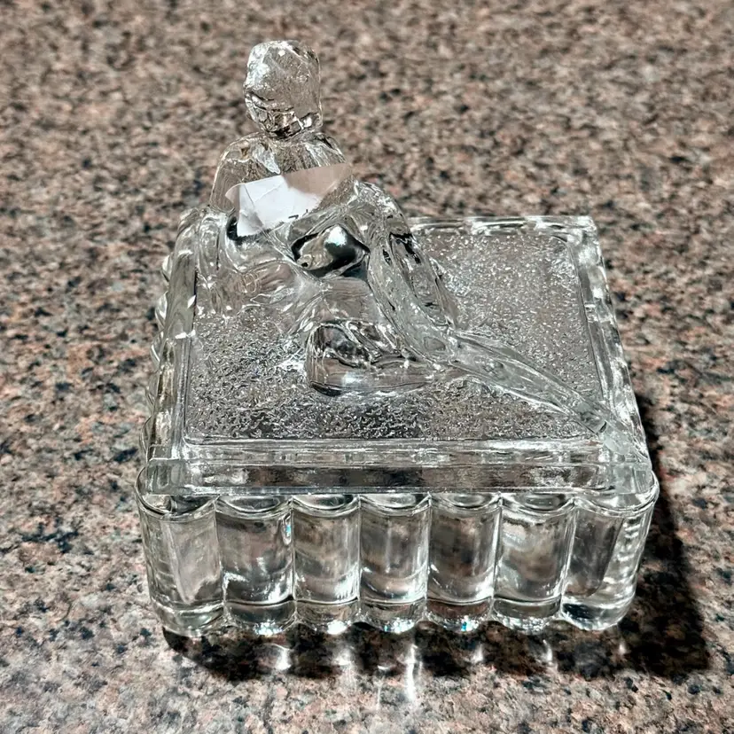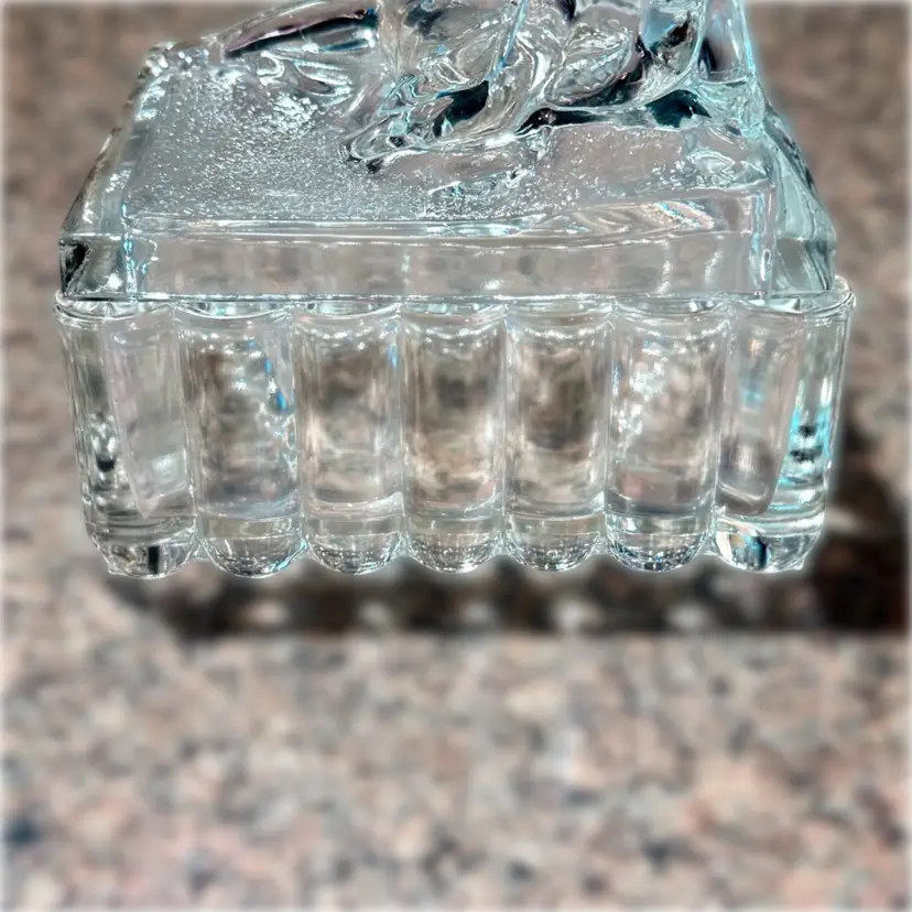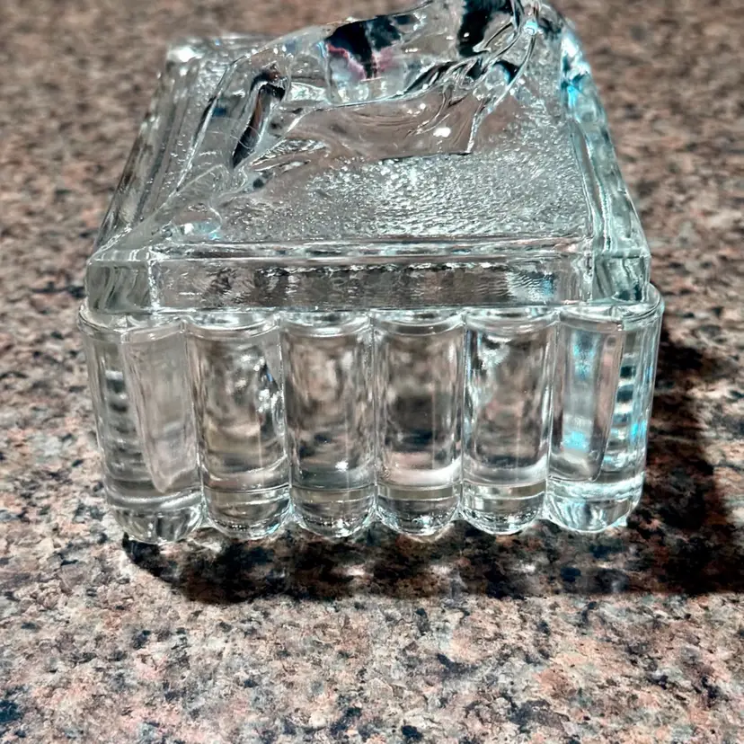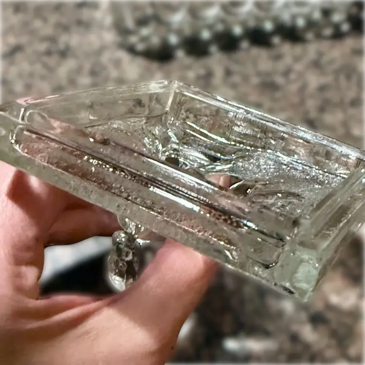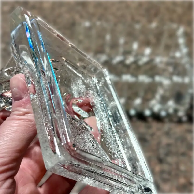 Approx 5” x 5” x 4”; unsigned; good vintage (almost antique!) condition — howeverrrr, there are a few oopsie daisies, as shown in the last two photos. There is a spot where a couple fleabites are present, and a spot where there is a chip. Not a dealbreaker, by any means…I purchased this stunning, special, HTF piece in this condition without giving it a second thought — because HALLOOOO??? Do you see this? Yeah. That’s why.
