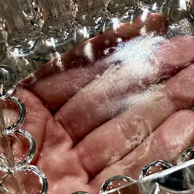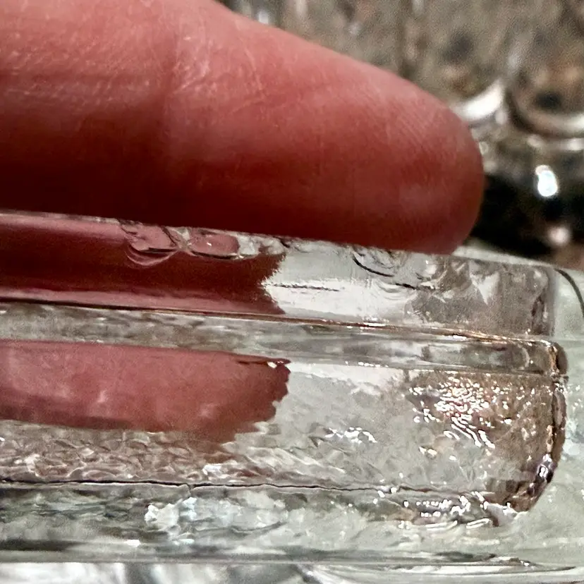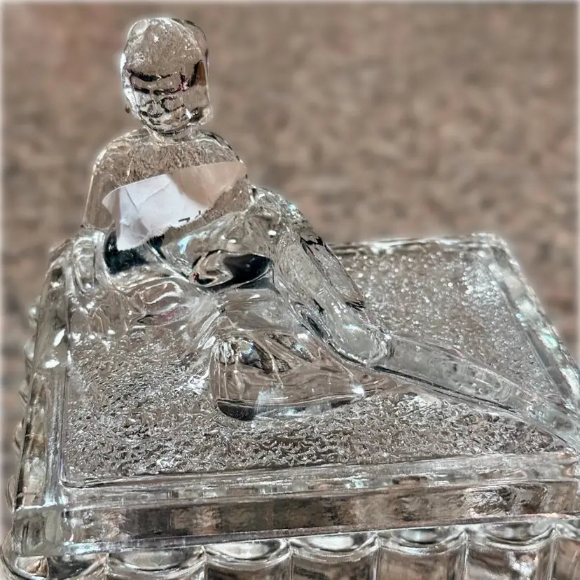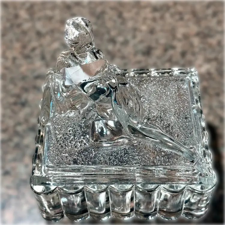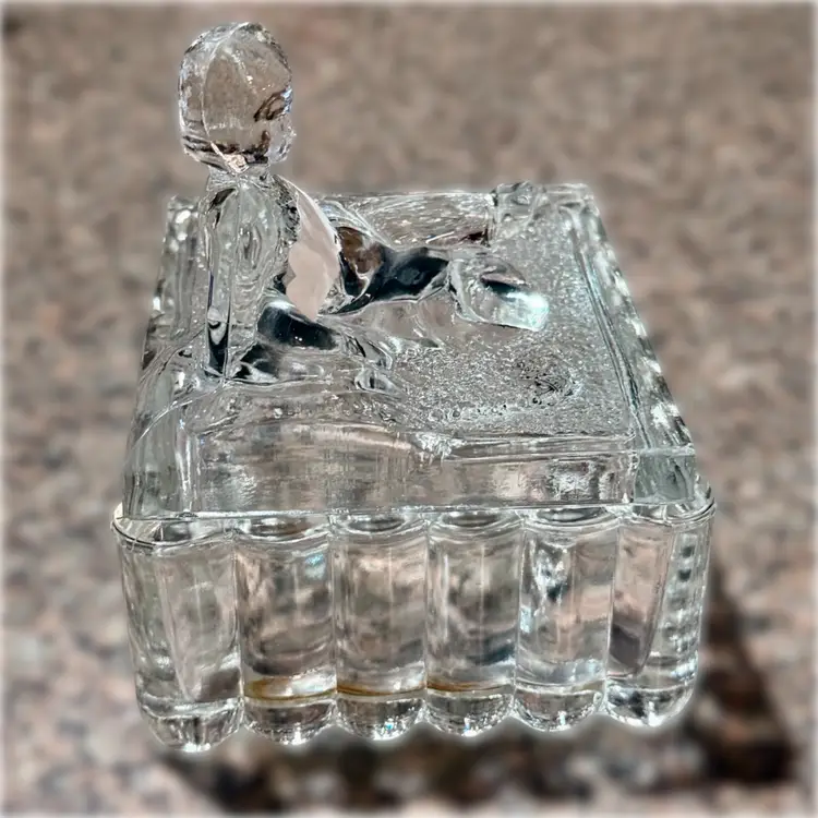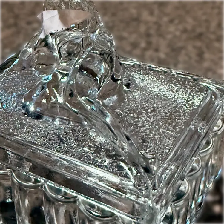 Approx 5” x 5” x 4”; unsigned; good vintage (almost antique!) condition — howeverrrr, there are a few oopsie daisies, as shown in the last two photos. There is a spot where a couple fleabites are present, and a spot where there is a chip. Not a dealbreaker, by any means…I purchased this stunning, special, HTF piece in this condition without giving it a second thought — because HALLOOOO??? Do you see this? Yeah. That’s why.