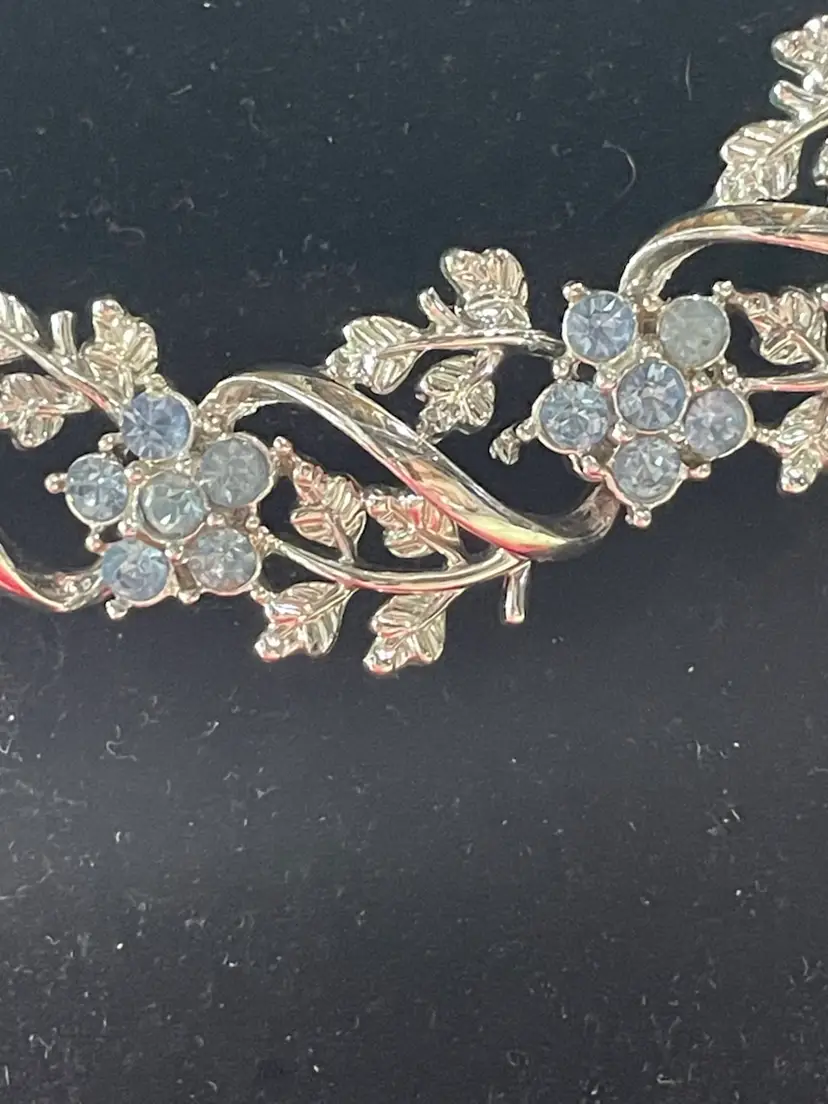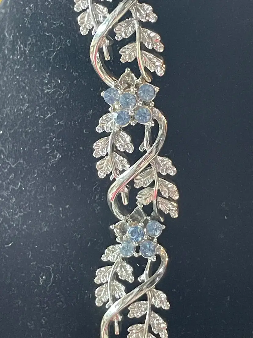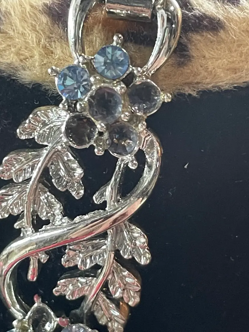 Silver tone Aurora Borealis Rhinestone Crystal Necklace and Bracelet Set Bracelet has some stones missing as shown in pictures. Necklace is perfect.