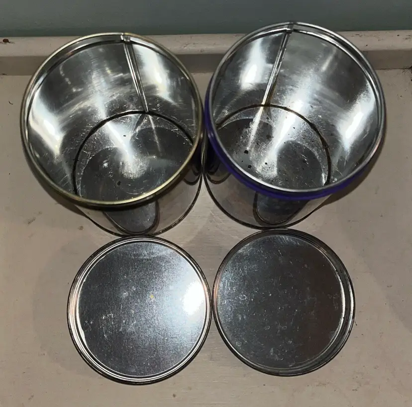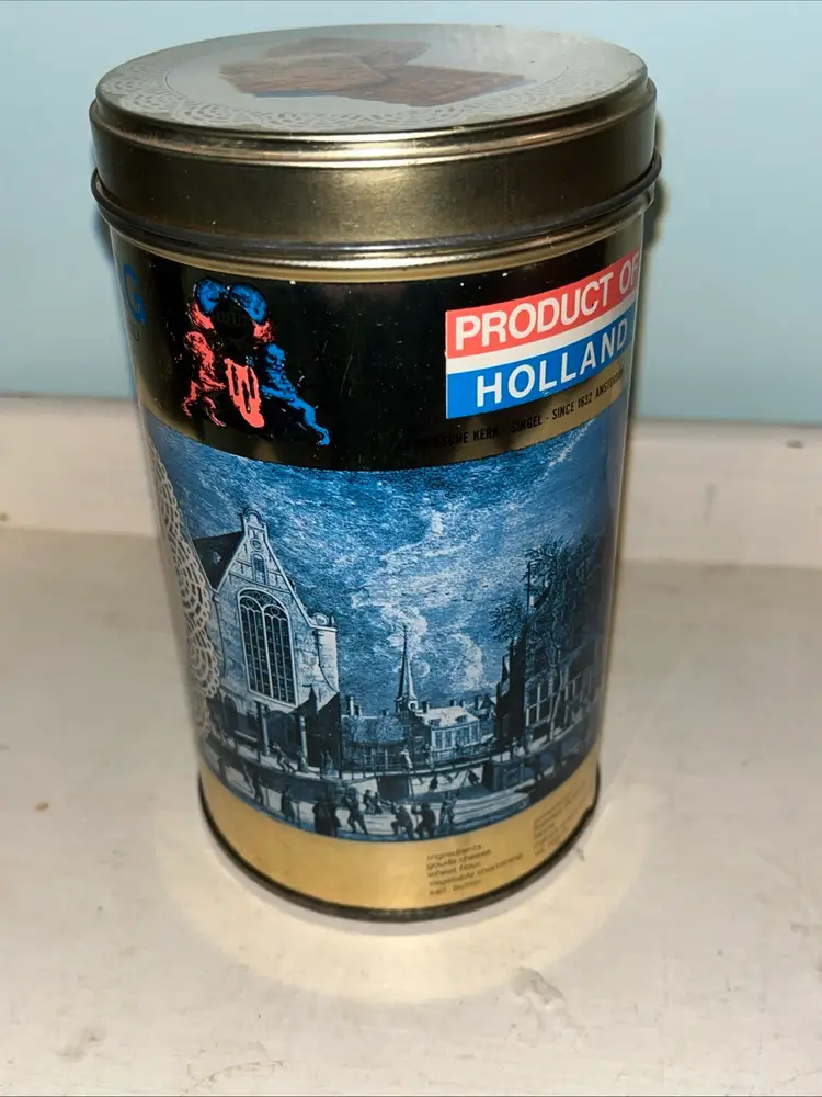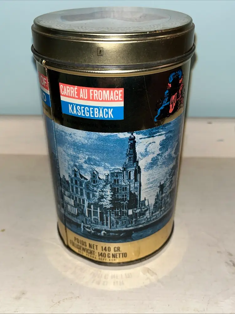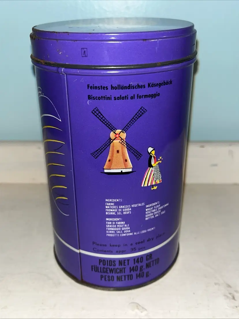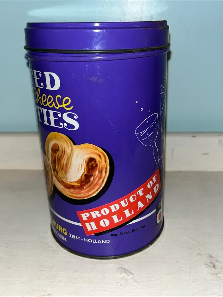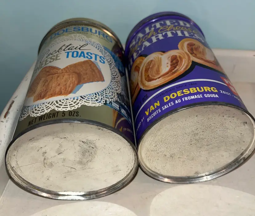 Lot of 2 vintage Van Doesburg Product of Holland tins for Cocktail Cheese Toasts and Salted Dutch Cheese Hearties. Both are approximately 5.75" tall and 3.5" in diameter. These would be fun display pieces for your kitchen. Pre-owned and in good, vintage condition. Expect normal wear such as scuffs, scratches and/or minor rust especially to the interior. See photos and ask any questions prior to purchase. Thank you for your interest in this item. I try my best to accurately describe each item that I list for sale including any known defects. All items are sold AS IS. What you see in the photos is exactly what you get, nothing more, nothing less. If an item is not specifically listed as new then it is in pre-owned, used condition and wear should be expected. I do not accept returns so please take your time to review the item description, condition description and photos.