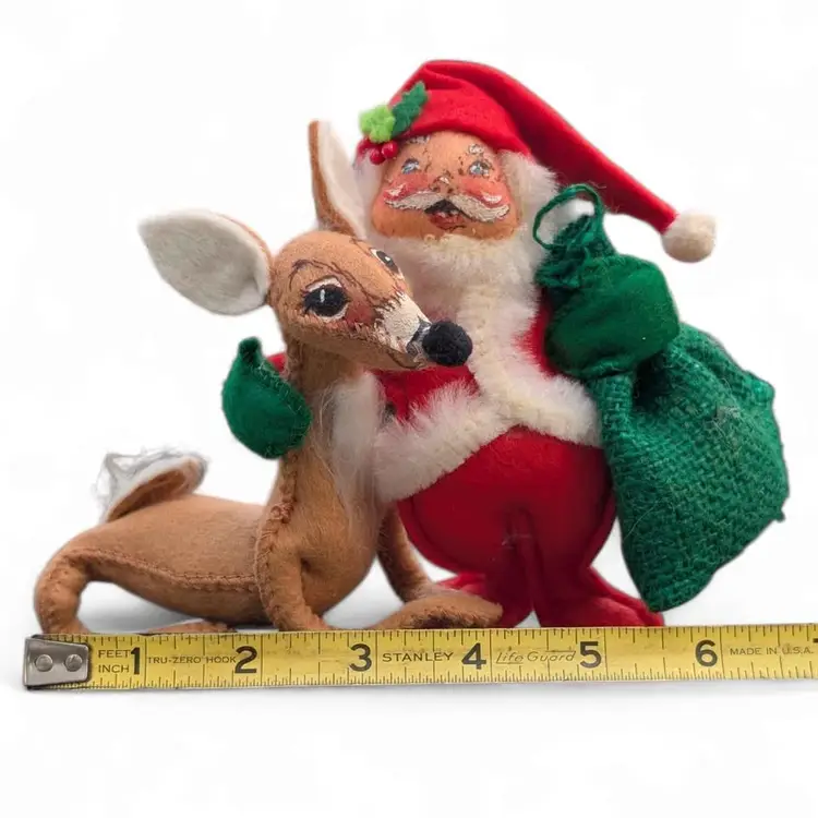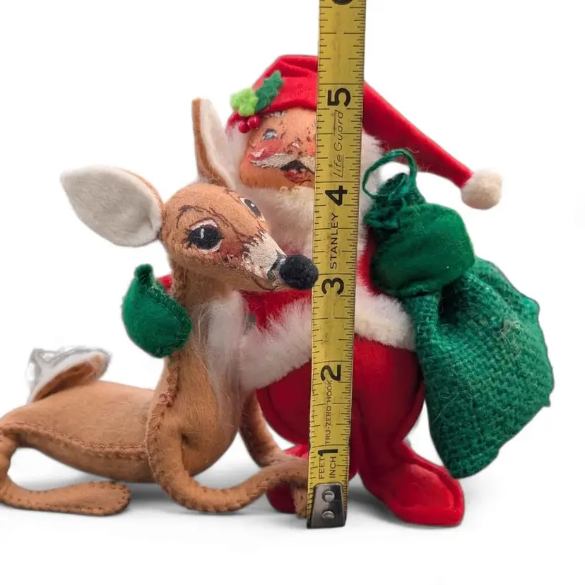 Vintage Lot Of 5 Annalee mobilitee dolls 4 Santas And 1 Reindeer. This is an awesome set of various vintage Annalee dolls - 4 different santas and 1 reindeer (1 Santa and reindeer are posed together but they are two separate dolls) these are in great shape and can be posed as you choose. The Santa gathering wood and the one sitting by itself are dated 1971. Then there is a Santa with a stocking dated 1963. The Santa with the reindeer are both dated 1981. These would make such a great addition to any collection! Measurements are in the photos.