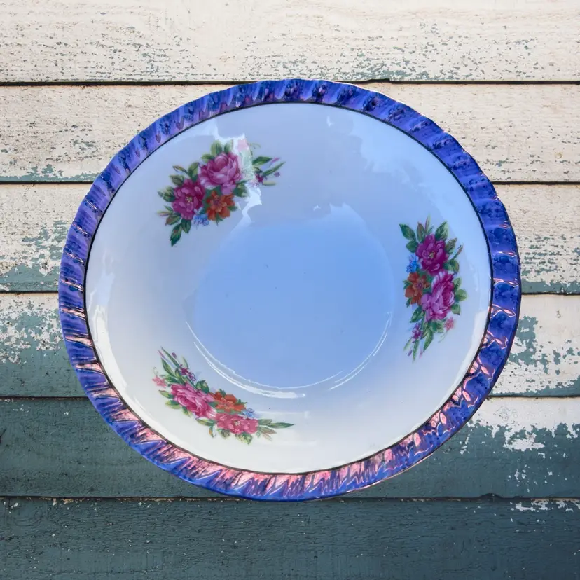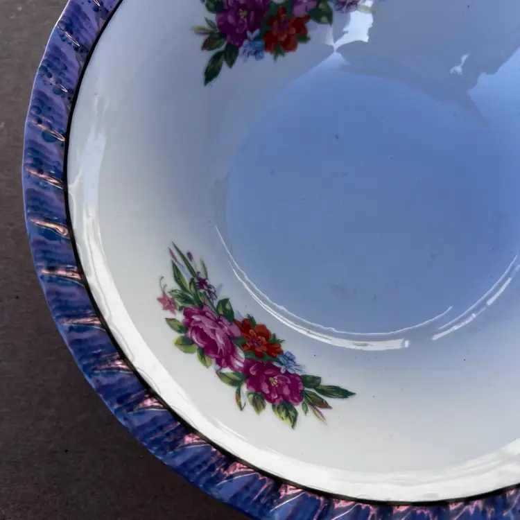 Vintage Made I’m Japan Floral Lusterware Bowl Decor Flowers Vintage Yamatsu Japan Bowl Floral With Purple Luster Rims 7”