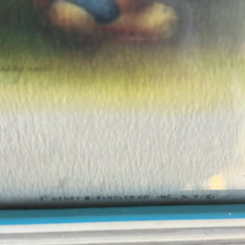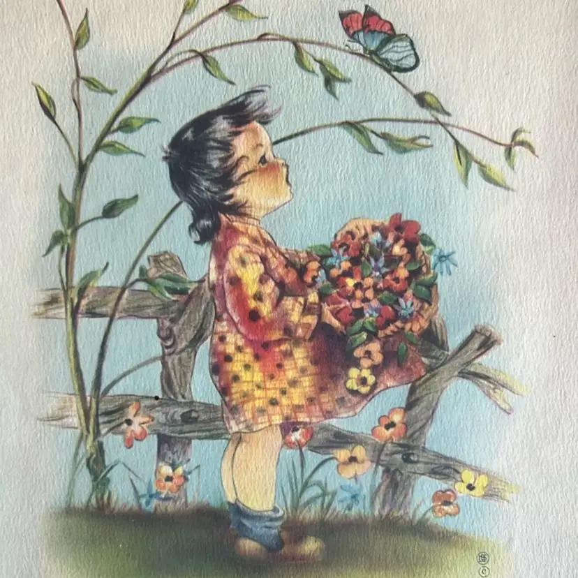 Adorable framed print from the 1940s. This sweet girl is singing to the butterfly (at least in my mind ๐). Marked Henry & Sandler Co Inc. Made in USA. No damage .